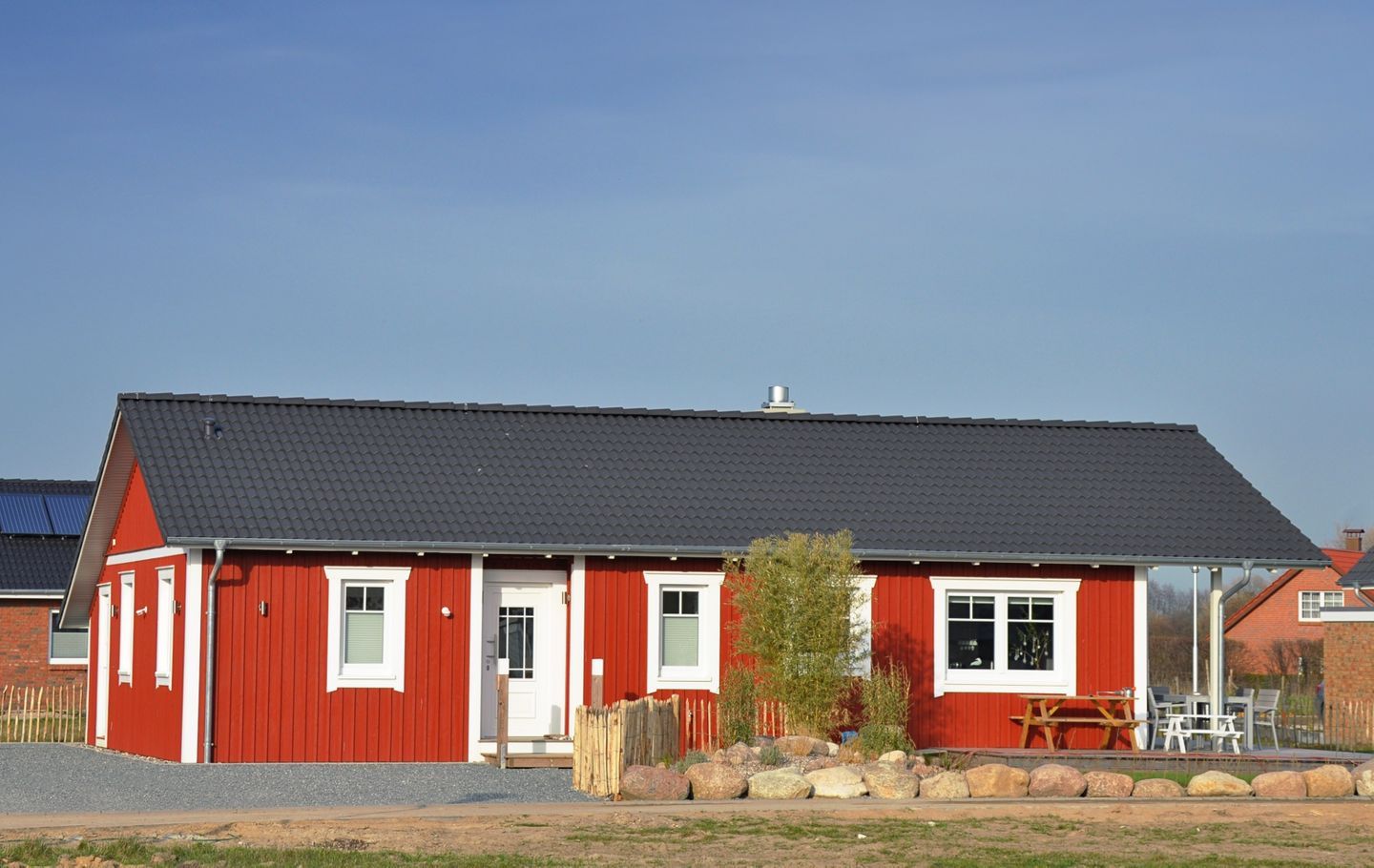 In ruhiger Lage im charmanten Ort Petersdorf auf Fehmarn erwartet Sie dieses liebevoll eingerichtete 90 m² große rote Ferienhaus, nur etwa 5 km von der Ostsee entfernt. Perfekt für bis zu 6 Personen, bietet es Ihnen alles, was Sie für einen rundum entspannten Urlaub brauchen – inklusive drei Parkplätzen direkt am Haus.