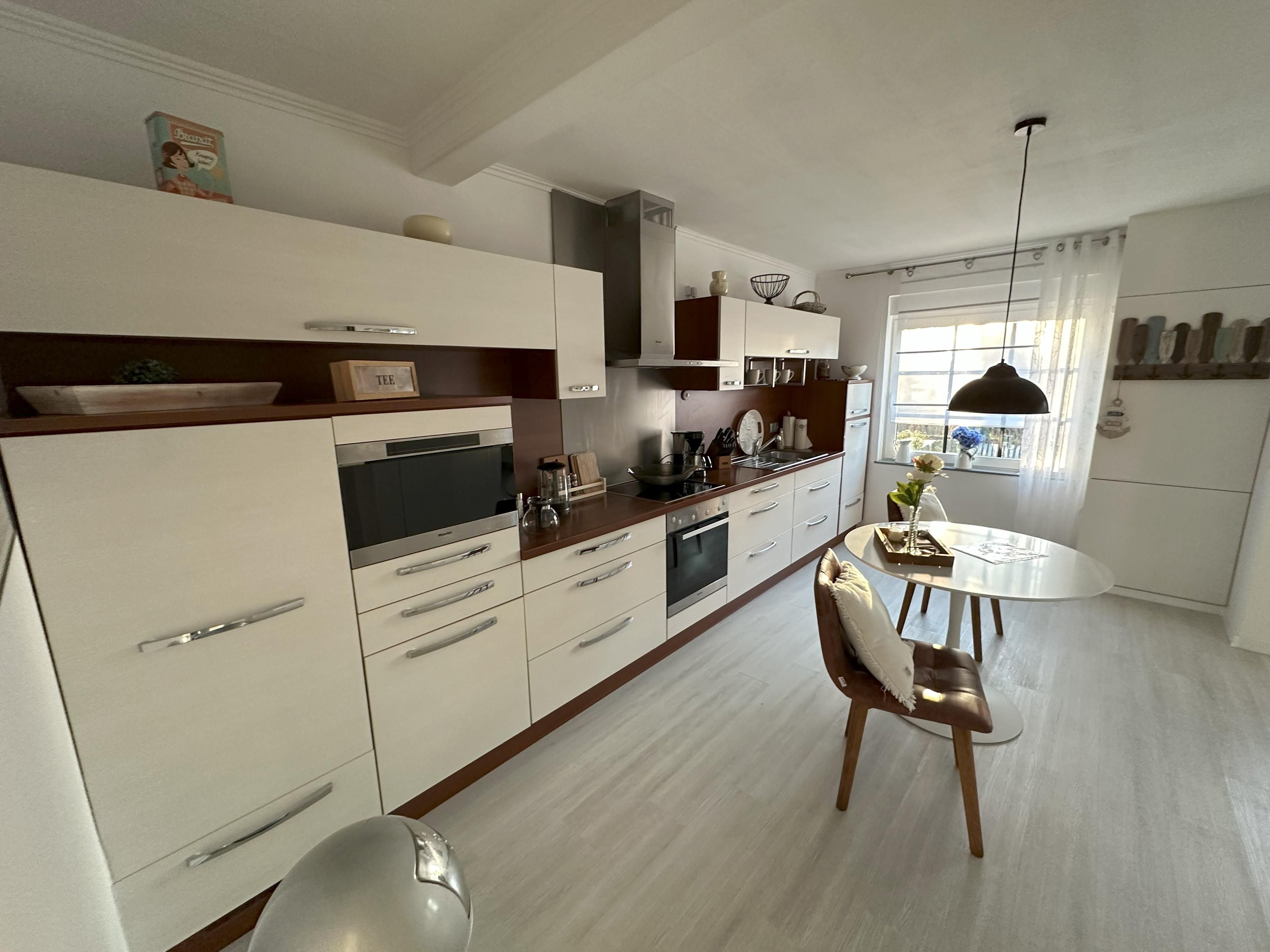 Die Wohnung mit Wohnzimmer, Schlafzimmer, Küche und Duschbad hat eine hochwertige Küche mit Miele-Geräten, Spülmaschine, Dampfgarer, Kühlschrank und Backofen. Hier macht das Frühstücken richtig Spaß.