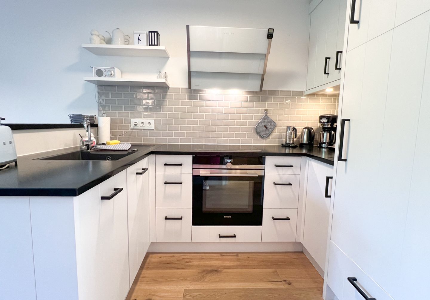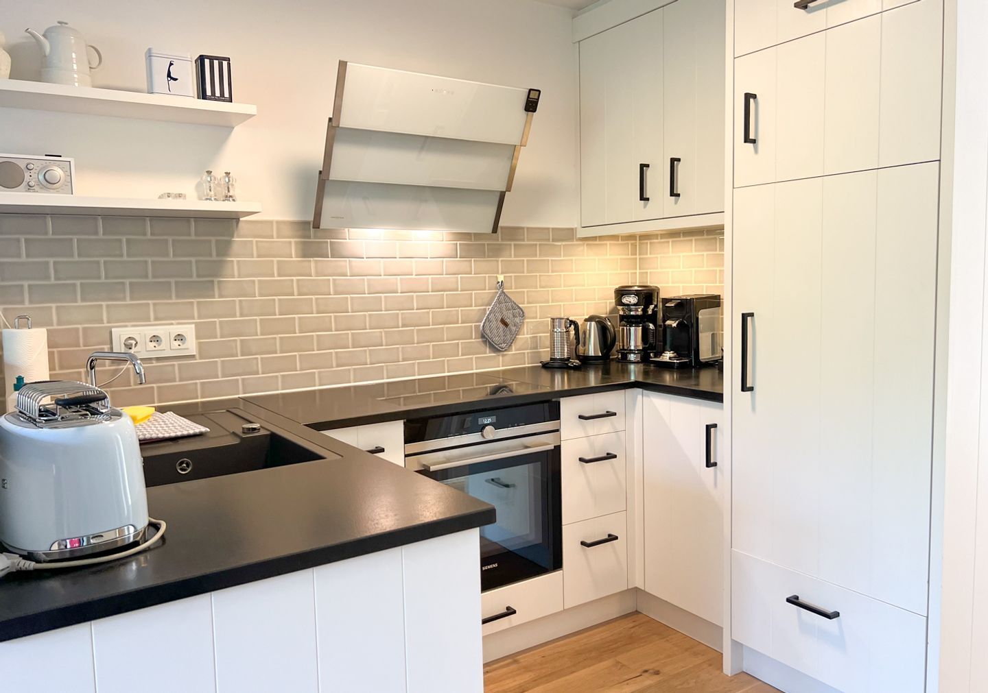 Die offene Küche ist ein echtes Highlight für Genießer: Sie ist voll ausgestattet mit Spülmaschine, Mikrowellen-Backofen-Kombigerät, Nespressomaschine, Toaster, Wasserkocher und allem, was das Kochherz begehrt. Auch Waschmaschine und Trockner stehen Ihnen zur alleinigen Nutzung zur Verfügung.