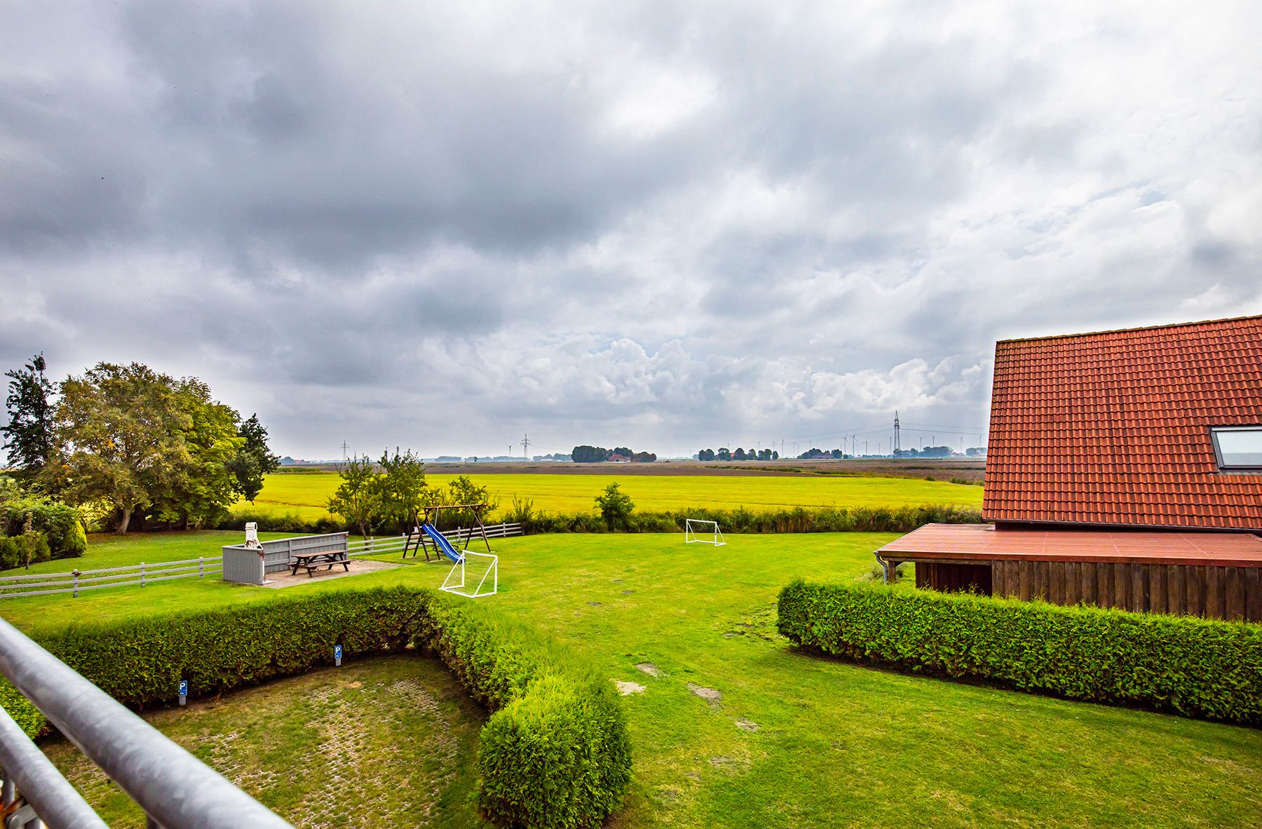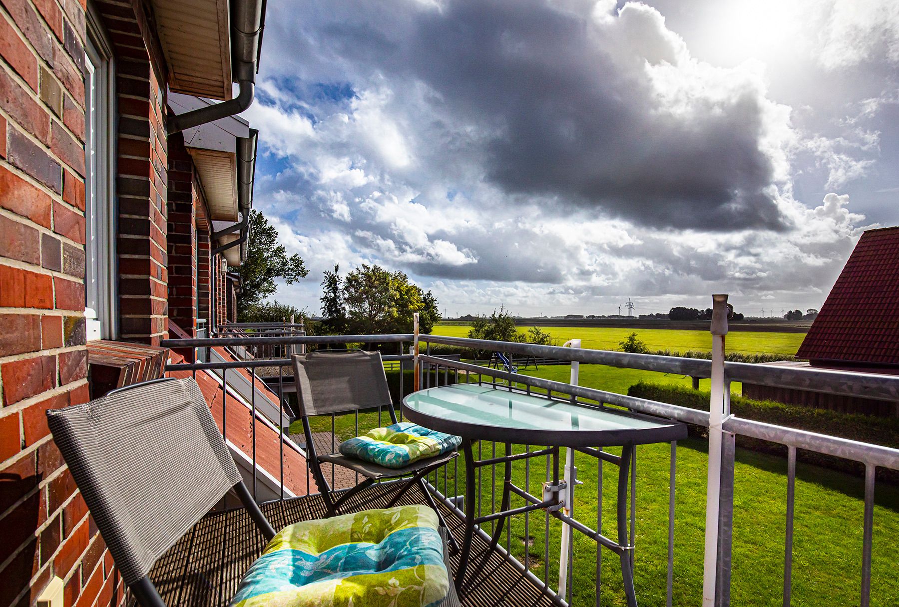 Unsere Ferienwohnung 2 im 1. Obergeschoss garantiert Ihnen mit einer Fläche von 65 m² über 2 Ebenen und einem großen Balkon eine erholsame Urlaubszeit in Ostfriesland. Entspannen Sie sich in Ihrem Zuhause auf Zeit mit einer grandiosen Fernsicht über das idyllische Marschland.