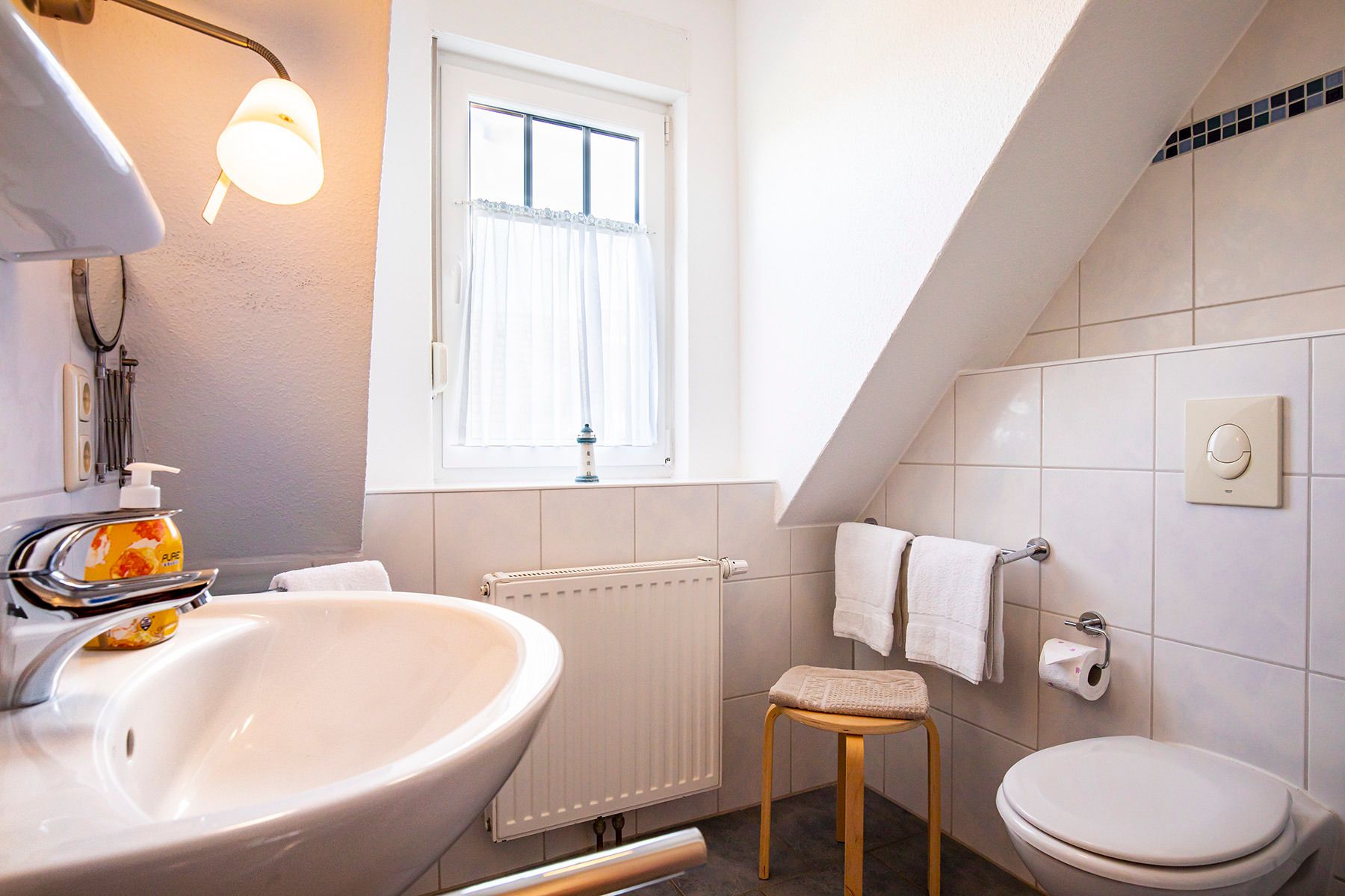 Gegen eine Gebühr pro Wasch- bzw. Trockengang (Münzautomat) können Sie in unserem Waschraum die Miele Waschmaschine und den Miele Wäschetrockner neuester Bauart nutzen. Einen Gartengrill stellen wir Ihnen kostenlos zur Verfügung. Darüber hinaus haben Sie die Möglichkeit, unseren Grillplatz bei der Liegewiese mit großem Steingrill zu nutzen. Ein überdachter Unterstand für Ihre Fahrräder befindet sich neben dem Haus.