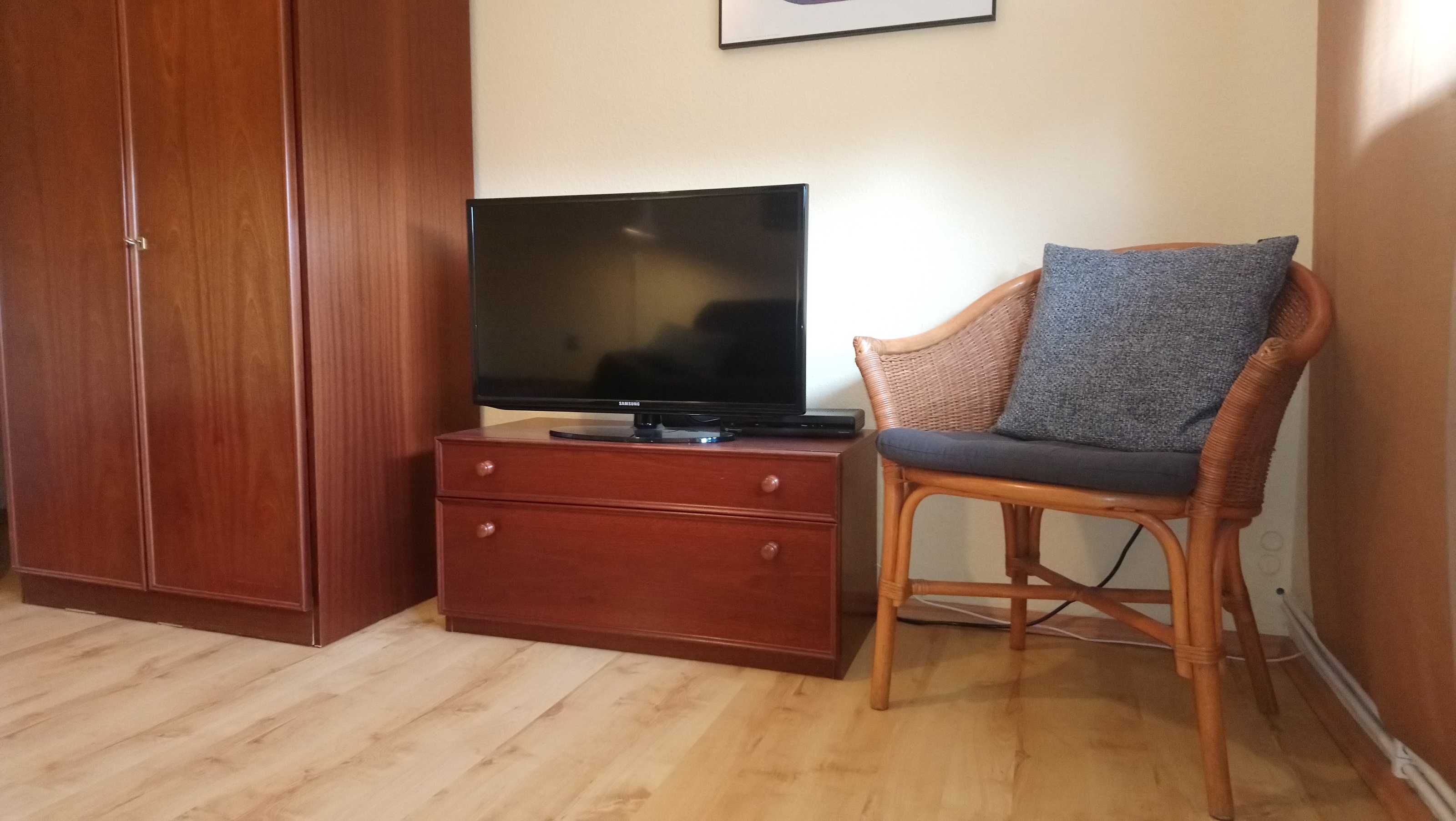 Voll eingerichtete FeWo für 1-2 erwachsene Gäste , max 1 Kind erst ab 6 Jahren. Komplett eingerichtete Küche (ohne Spülmaschine), hochwertige Vollholzmöbel mit Samsung LCD-TV (32 Zoll) und schnelles Vodafone Wifi-WLAN-Internet.