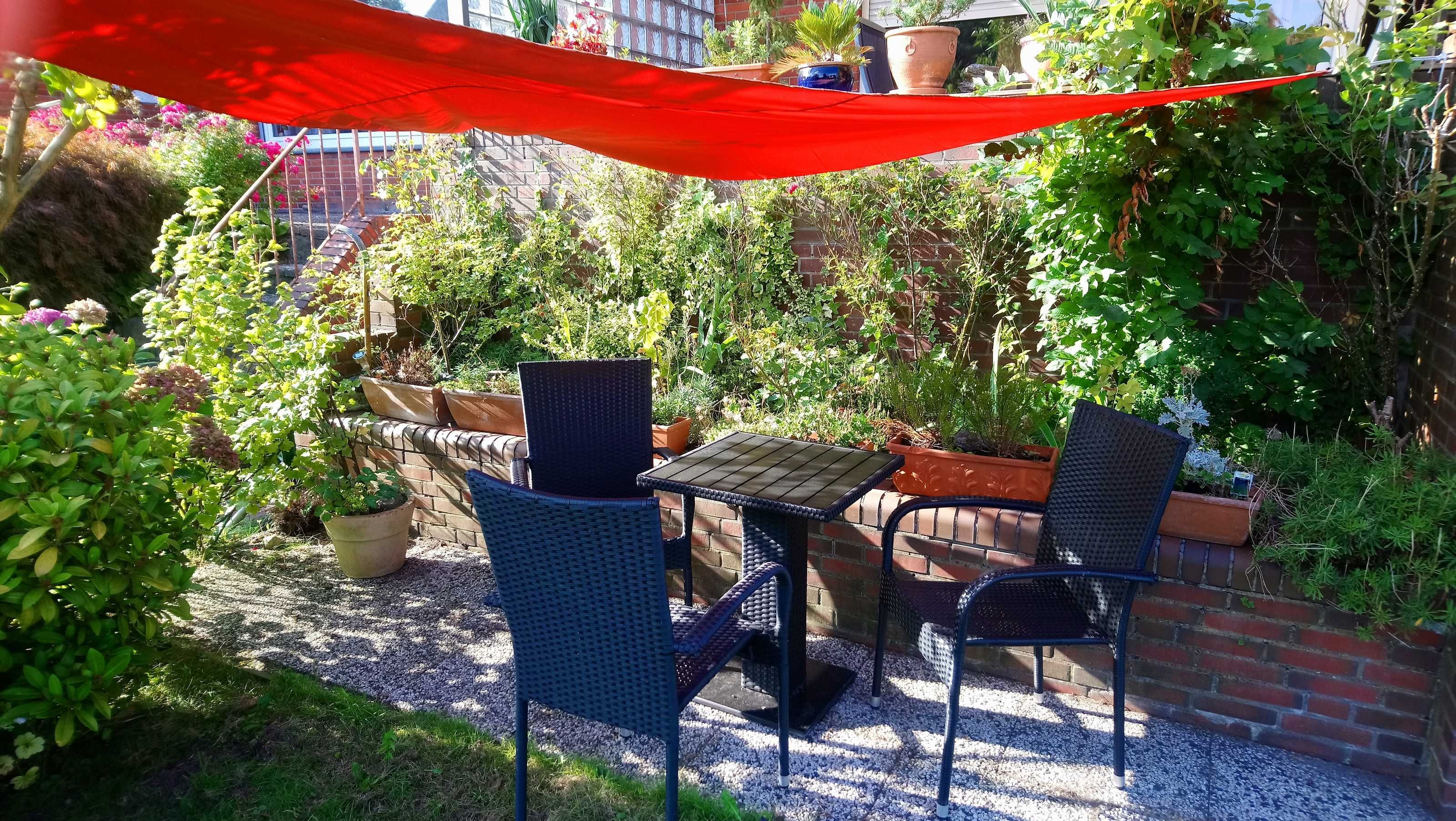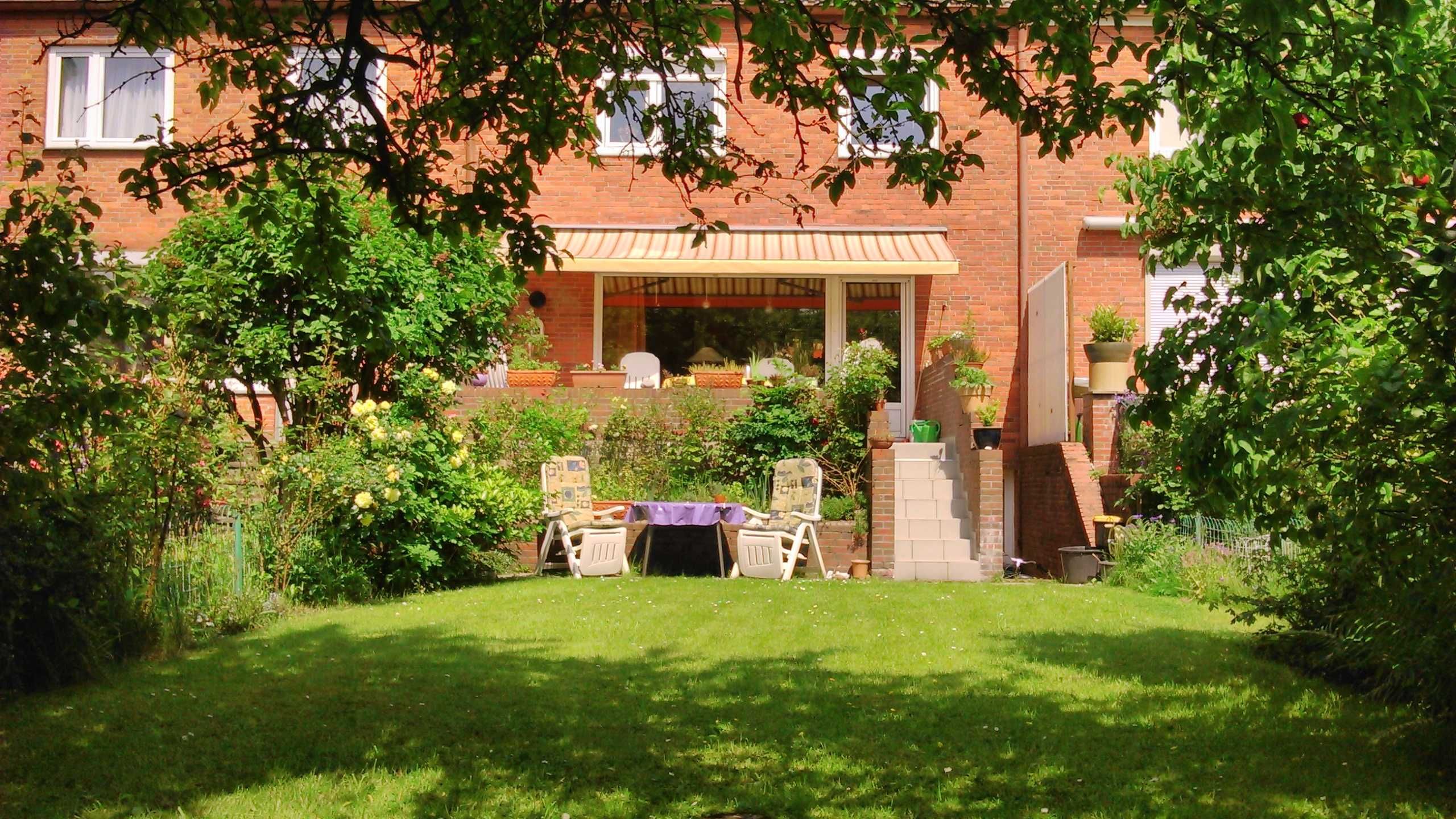 Ferienwohnung im Herzen der grünen Stadt am Meer. Ortslage in Wilhelmshaven: Altengroden Süd, Beethovenstrasse, separater Eingang im 1. Stock eines Backstein-Reihenhauses.