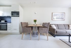 RUHIG, ZENTRAL GELEGEN. NEU und CHIC! Reihenhaus mit möblierter TERRASSE nach Süden, KAMINOFEN und schöner Ausstattung. Für bis 4 Personen. Mit elegantem und gemütlichem Wohnbereich mit hochwertiger Einbauküche und Eßplatz, 2 modernen Bädern (eins mit Wanne und Dusche, eins mit Dusche) und zusätzlichem Gäste-WC. Der Kaminofen sorgt in der Herbst- und Winterzeit für heimeliges Ambiente (für Brennholz muß - wenn Kaminofennutzung gewünscht ist - selbst gesorgt werden). Das Haus hat einen separaten Eingang und verfügt über einen Parkplatz vor dem Haus. Vom Haus aus können Sie das Ortszentrum (Friedrichstrasse) in ca. 10 Minuten und den Strand in ca. 15 Minuten zu Fuß erreichen (zum Strand sind es ca. 1,2 km). ca. 68 qm Fläche (Sylter Maß).