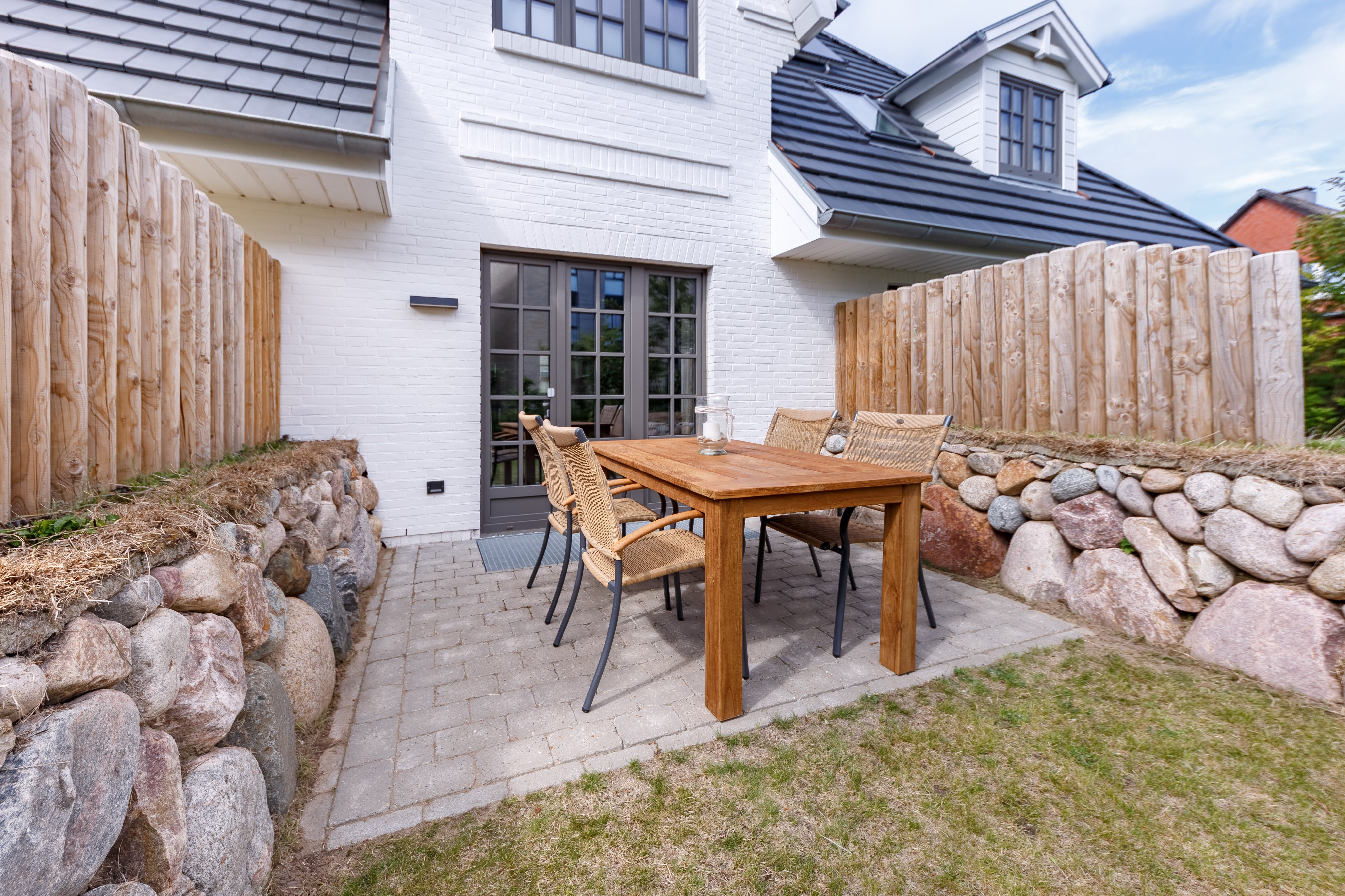 RUHIG, ZENTRAL GELEGEN, NEU und CHIC! Reihenhaus mit möblierter TERRASSE nach Süden mit Minigarten, KAMINOFEN und schöner Ausstattung. Für bis 4 Personen (incl. Kindern), mit elegantem und gemütlichem Wohnbereich mit Einbauküche und Eßplatz, 2 modernen Bädern (eins mit Wanne und Dusche, eins mit Dusche) und zusätzlichem Gäste-WC. Der Kaminofen sorgt in der Herbst- und Winterzeit für heimeliges Ambiente (für Brennholz muß - wenn Kaminofennutzung gewünscht ist - selbst gesorgt werden). Das Haus hat einen separaten Eingang und verfügt über einen Parkplatz vor dem Haus. Vom Haus aus können Sie das Ortszentrum (Friedrichstrasse) in ca. 5 Minuten und den Strand in ca. 10 Minuten zu Fuß erreichen (zum Strand sind es ca. 1,2 km). Ca. 68 qm Fläche (Sylter Maß). WLAN incl..