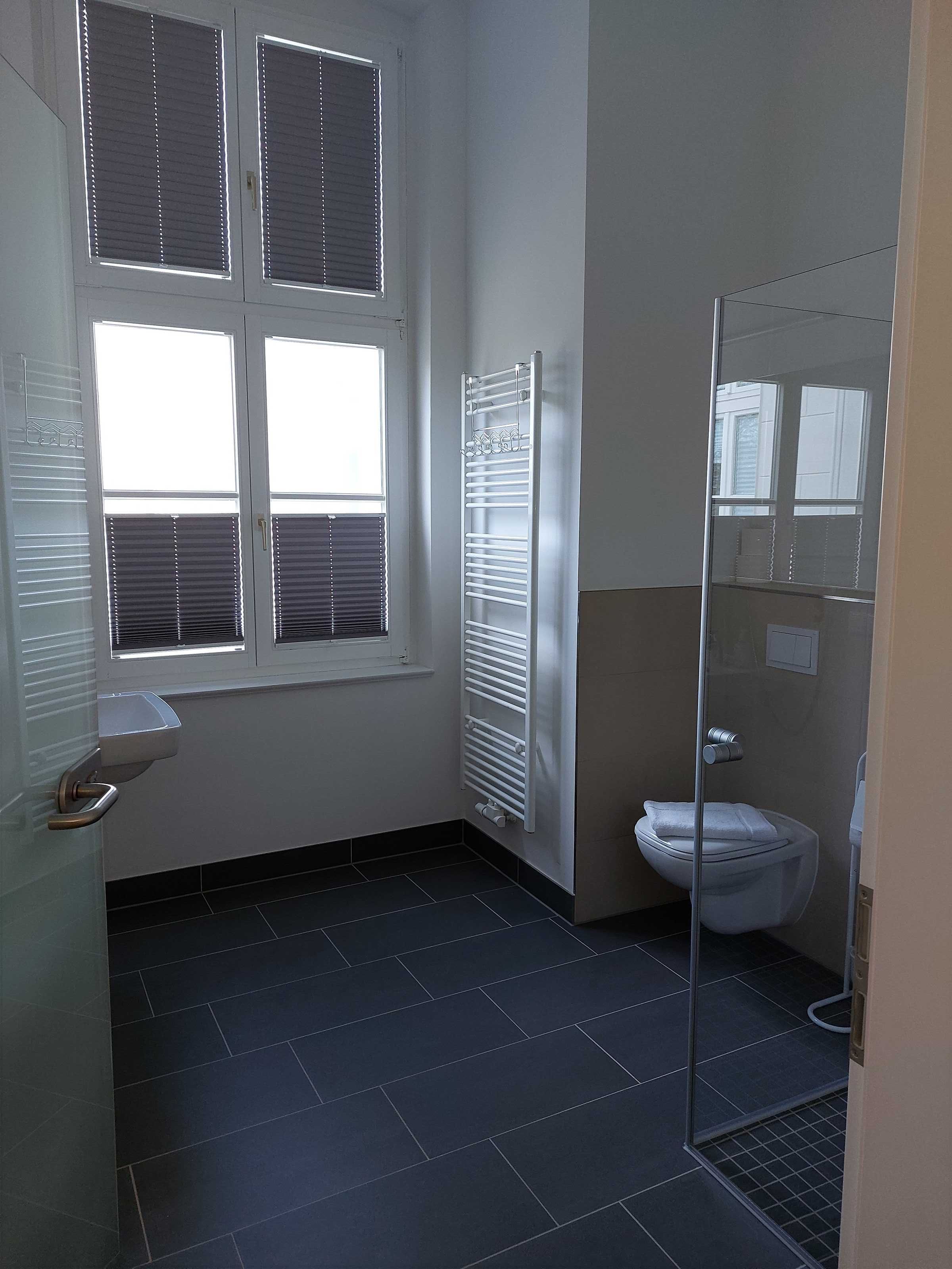 Alle Wohnungen verfügen über moderne Bäder und bodentiefe Duschen. Im Preis ist die Erstausstattung mit Bettwäsche, Handtüchern sowie Geschirrtuch und Spülmittel enthalten.