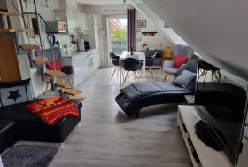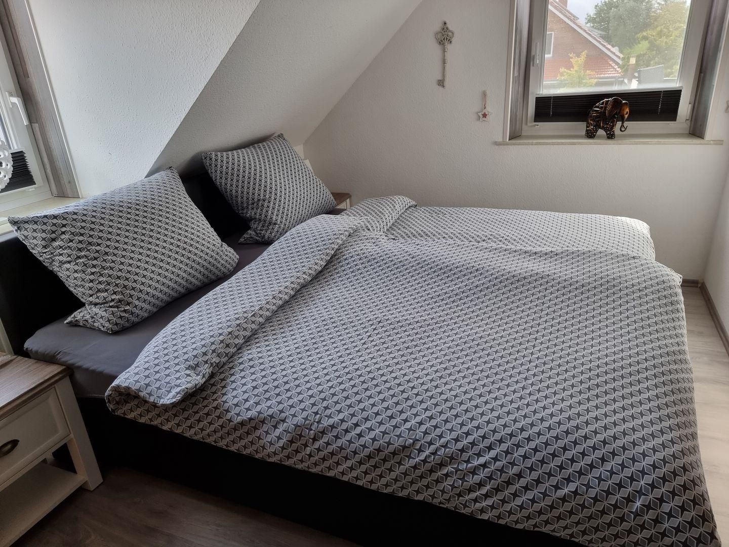 Erleben Sie unvergessliche Urlaubsmomente in unserer charmanten 3-Sterne Ferienwohnung, die eine perfekte Mischung aus Komfort und Stil bietet. Diese idyllische Rückzugsoase umfasst einen gemütlichen Wohn- und Essbereich, der sich zu einer einladenden Dachterrasse öffnet, ein elegantes Schlafzimmer mit einem komfortablen Doppelbett, sowie ein Schlafzimmer im Spitzboden mit zwei Einzelbetten. Hier haben die Kids Ihr eigenes Areal. Ein modernes Duschbad vervollständigt Ihr Urlaubserlebnis. Für Ihre Privatsphäre sind alle Zimmer mit Rollläden ausgestattet.
