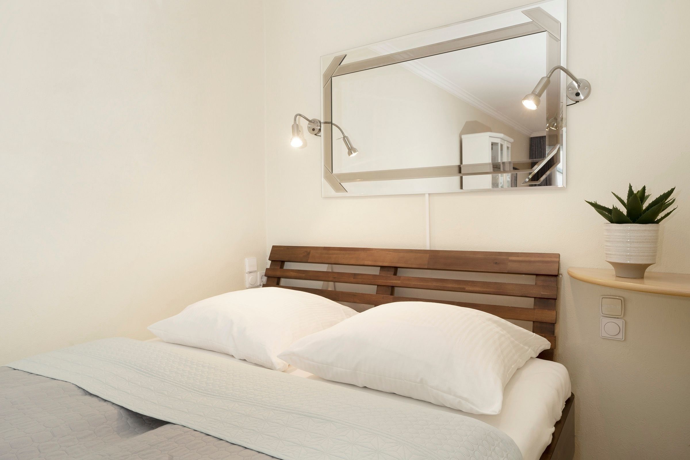Schlafzimmer: 1 Doppelbett (140x200 cm)