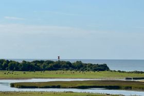 Die 45 m² große Ferienwohnung wurde im Jahr 2025 umfassend renoviert und bietet alles, was für einen erholsamen Urlaub erforderlich ist. Vom Balkon und der Essecke aus genießen Sie einen herrlichen Blick auf die Steilküste und die Salzwiesen. In der Wohnung steht ein Hochstuhl,ein Wickeltisch und ein Reisebett bereit, sodass sich auch die kleinsten Gäste willkommen heißen können.