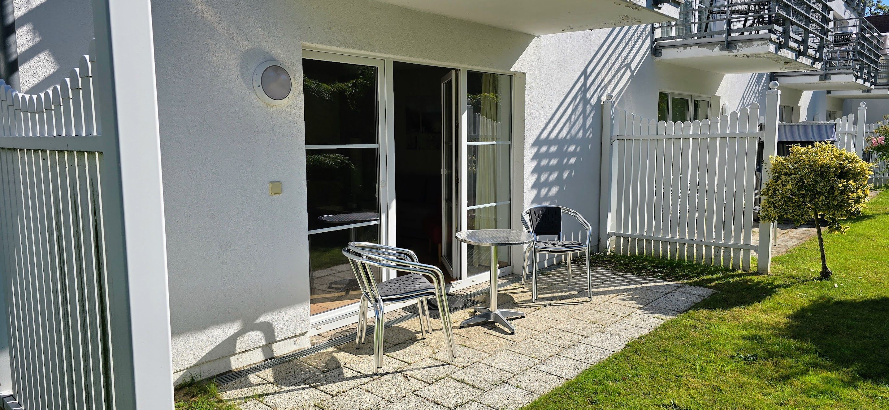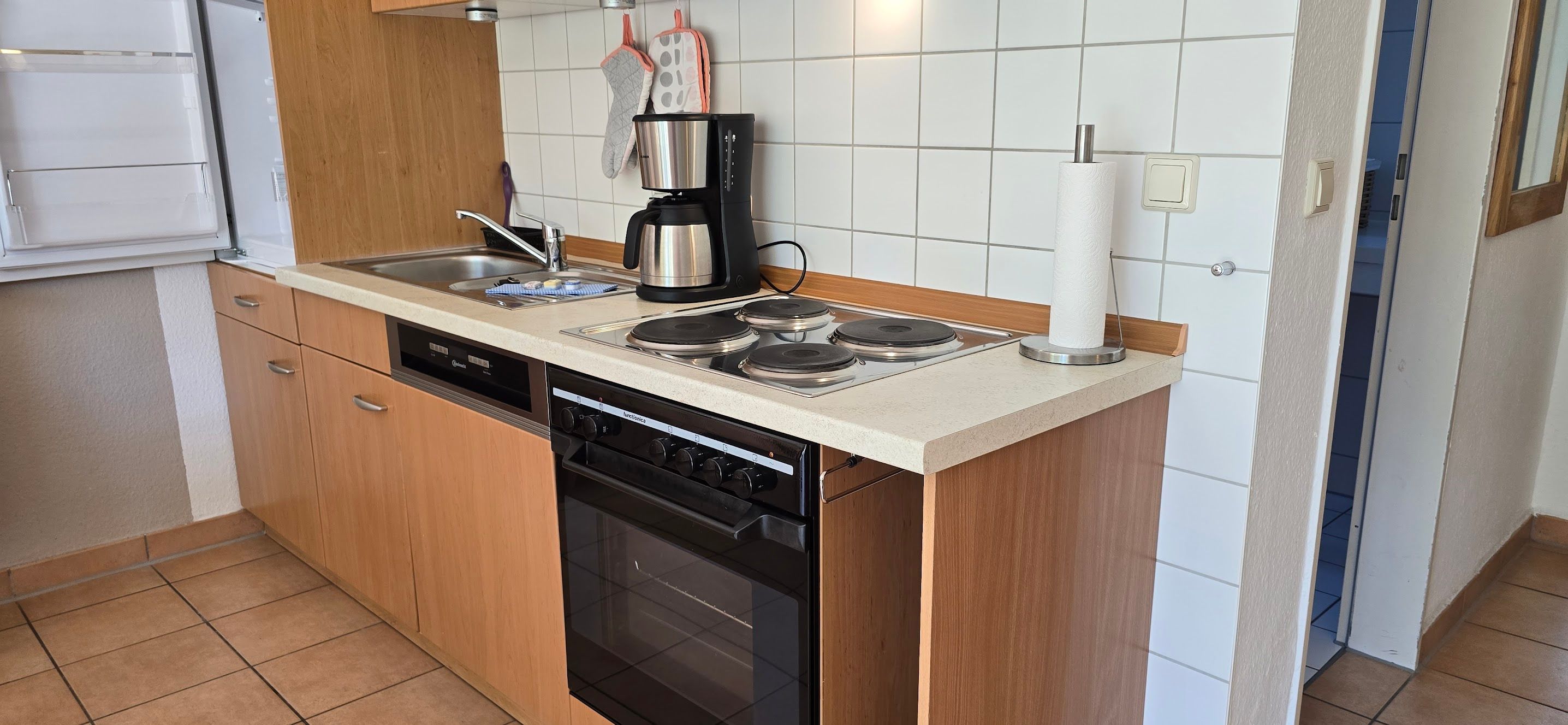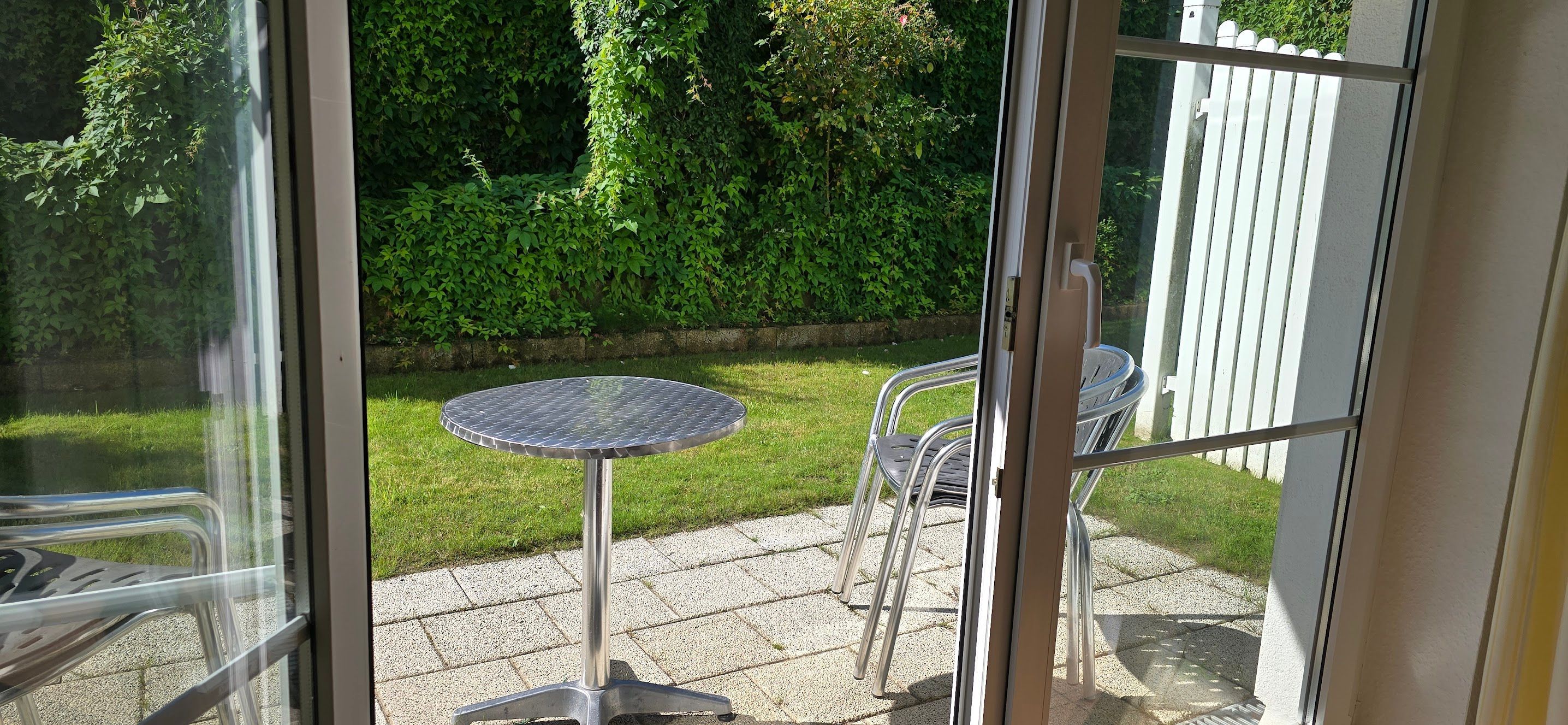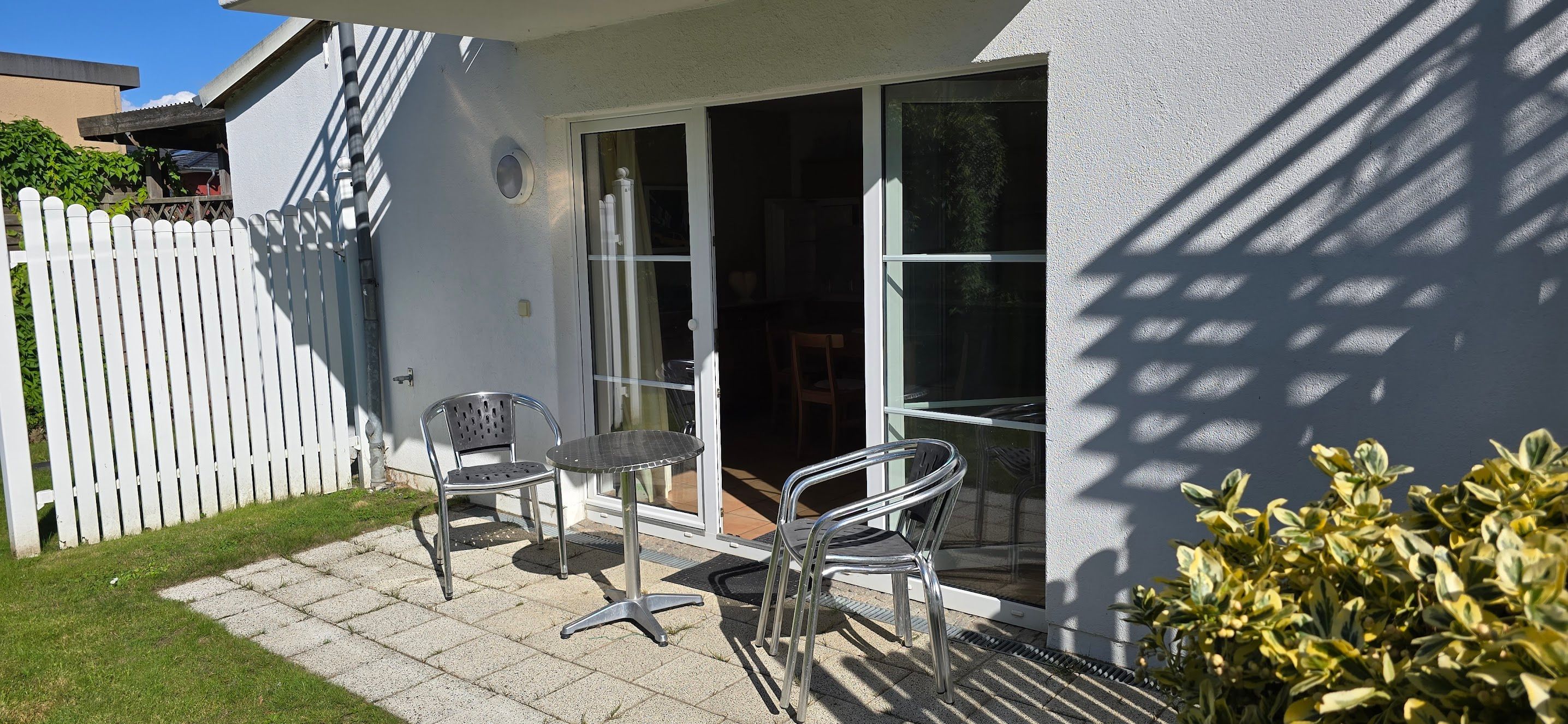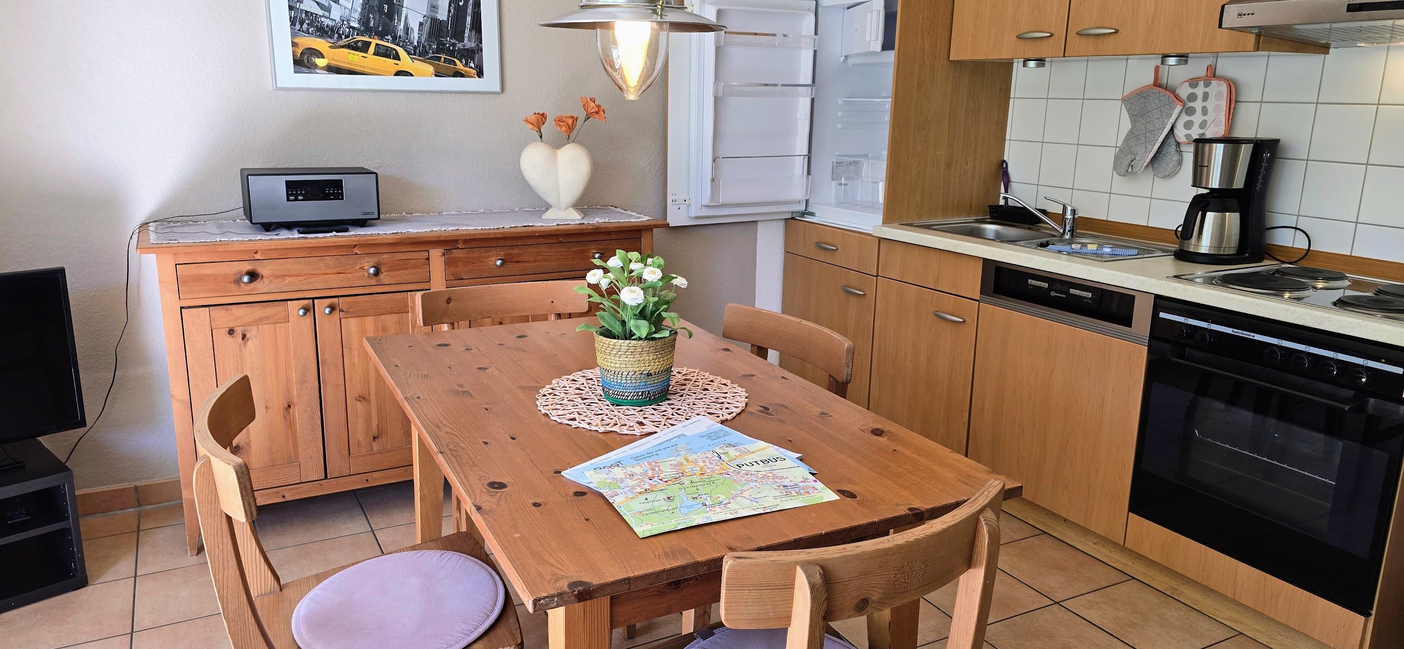 2 Raum Apartement mit Terrasse , 1,80m x 2 Doppelbett im Schlafzimmer und Schlafcouch im Wohnzimmer sowie einer gut ausgestatteten Küchenzeile mit Geschirrspüler und Backofen . Esstisch für 4 Personen. Kaffemaschine und Toaster sind vorhanden. Erstausstattung Bettwäsche und Handtücher vorhanden. Kinderbett und Hochstuhl für die Kleinsten bitte vorbestellen . Für Ihr Auto ist ein Garagenplatz vorgesehen. Max. Höhe 1,50m.