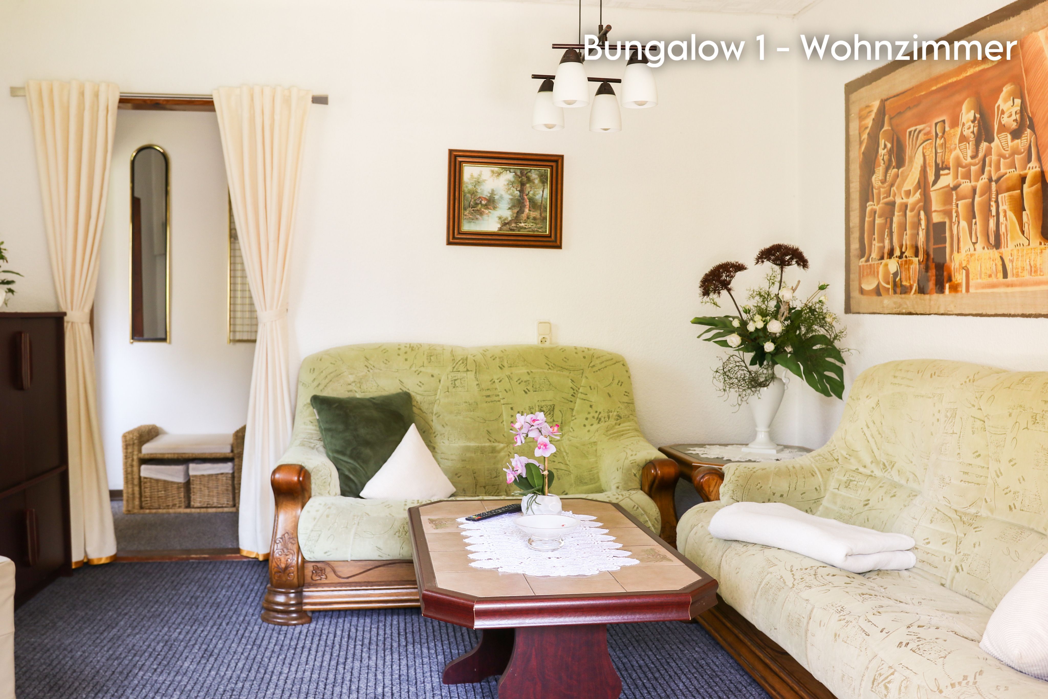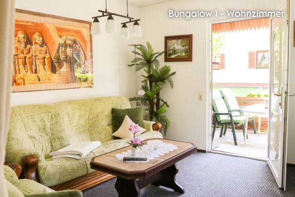 Der gemütliche Bungalow ist für bis zu 2 Erwachsene und 2 Kinder bis maximal 17 Jahre geeignet. Er verfügt über einen Wohnraum mit FLAT-TV und einer offenen Küchenzeile mit 2-Plattenherd, Kühlschrank mit Gefrierfach, Kaffeemaschine und Wasserkocher. Das separate Schlafzimmer ist mit einem Doppelbett und einem Etagenbett ausgestattet. Das Badezimmer verfügt über Dusche /WC. Vor dem Bungalow befindet sich eine möblierte Terrasse.
