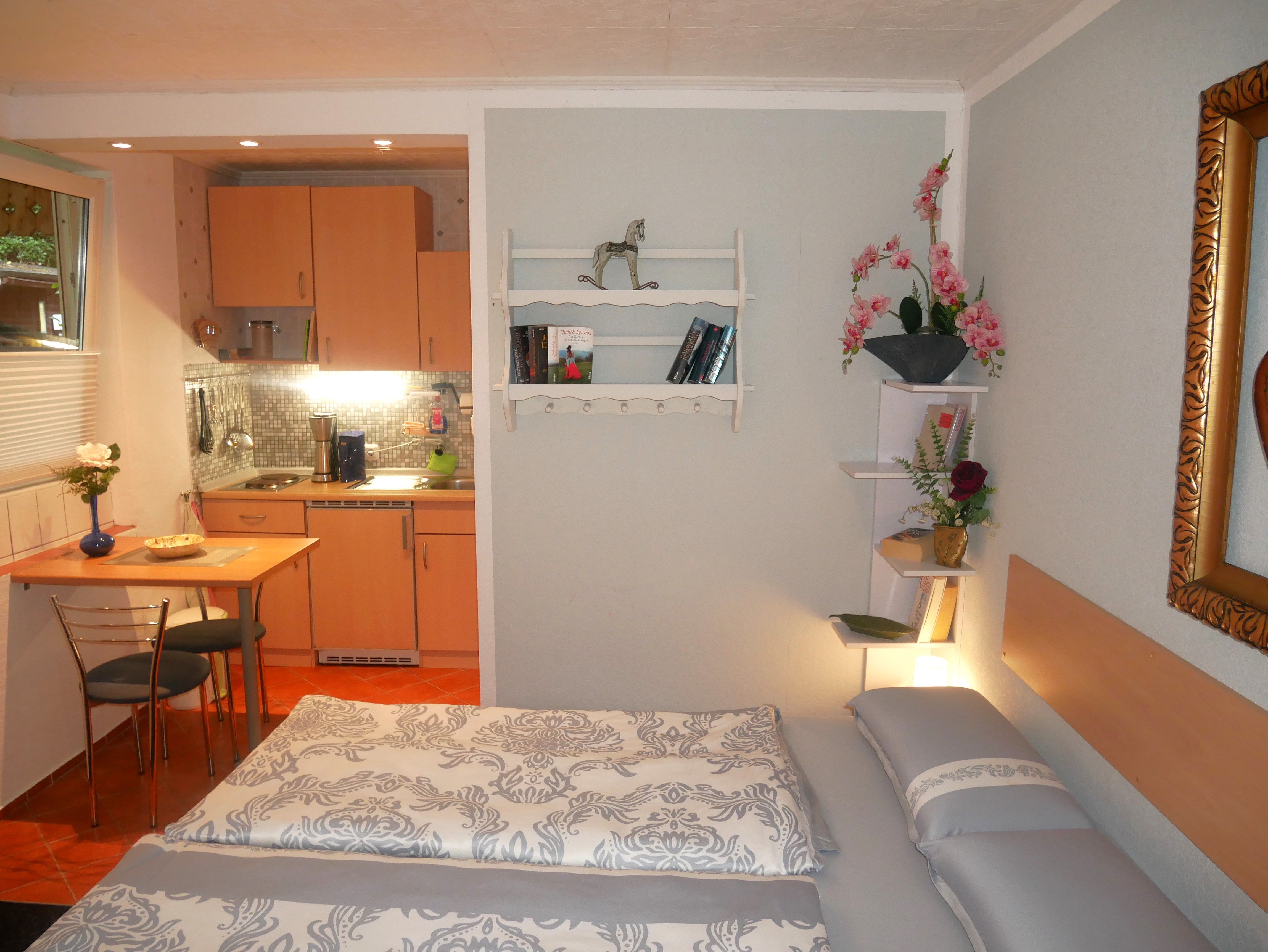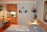 Der gemütliche Bungalow für 2 Personen verfügt über einen kombinierten Wohnschlafbereich mit Doppelbett, Esstisch, Flat-TV und einer offenen Küchenzeile mit 2-Plattenherd, Kühlschrank mit Gefrierfach, Kaffeemaschine und Wasserkocher. Vor dem Bungalow befindet sich eine möblierte Terrasse. WLAN steht Ihnen kostenfrei zur Verfügung. Die Bettwäsche ist inklusive, Handtücher bringen Sie bitte selbst mit.