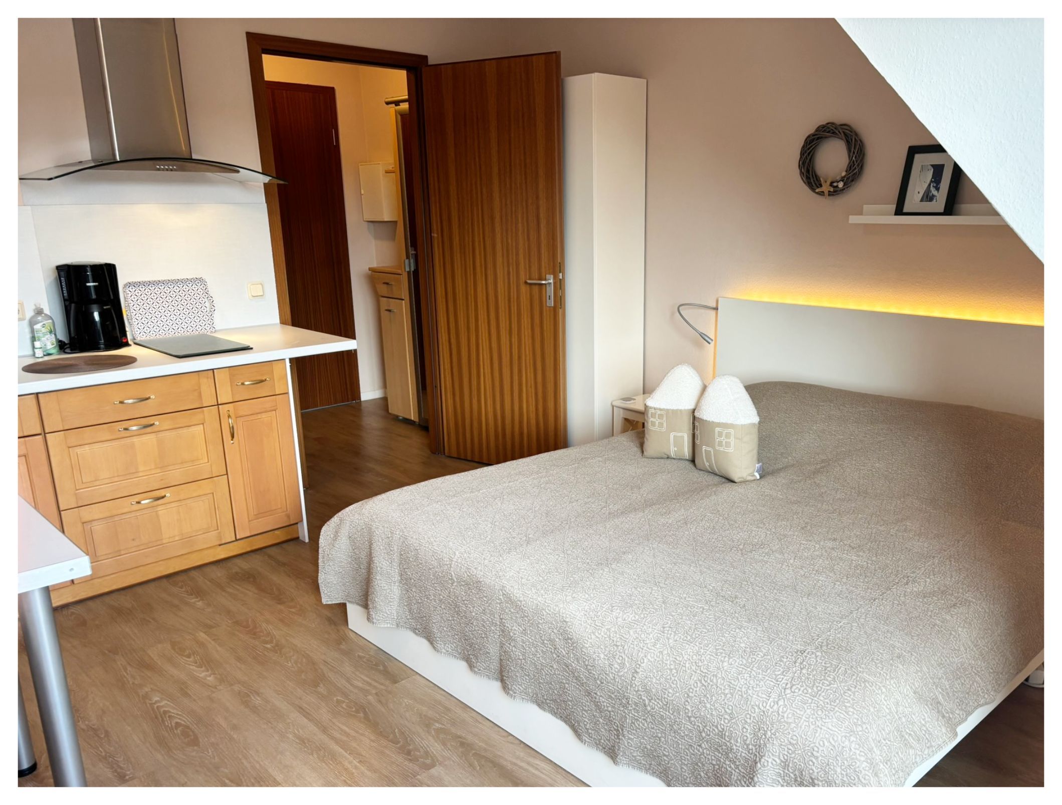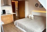 Das Apartment verfügt über einen Balkon, ein Wohn- und Schlafzimmer mit Küchenzeile und ein Bad mit Dusche und WC. Belegung 2+1 (bis 6 Jahre im Bett der Eltern). Die Küche ist mit zwei Kochfeldern und einer Mikrowelle ausgestattet. Das Apartment verfügt über Kabel-TV, Radio, Fön, Fliegengitter u.v.m. Ein Pkw-Stellplatz ist für Sie kostenfrei.
