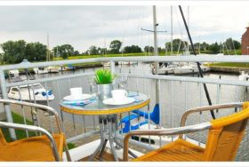 Vom Balkon aus genießen Sie ein Panorama, das seinesgleichen sucht: Hafen, Hafeneinfahrt und die Uecker liegen Ihnen zu Füßen, während in der Ferne das Stettiner Haff und die weite Küstenlandschaft den Blick schweifen lassen. Ob beim ersten Kaffee am Morgen oder bei einem Glas Wein zum Sonnenuntergang maritimes Flair begleitet Sie den ganzen Tag.