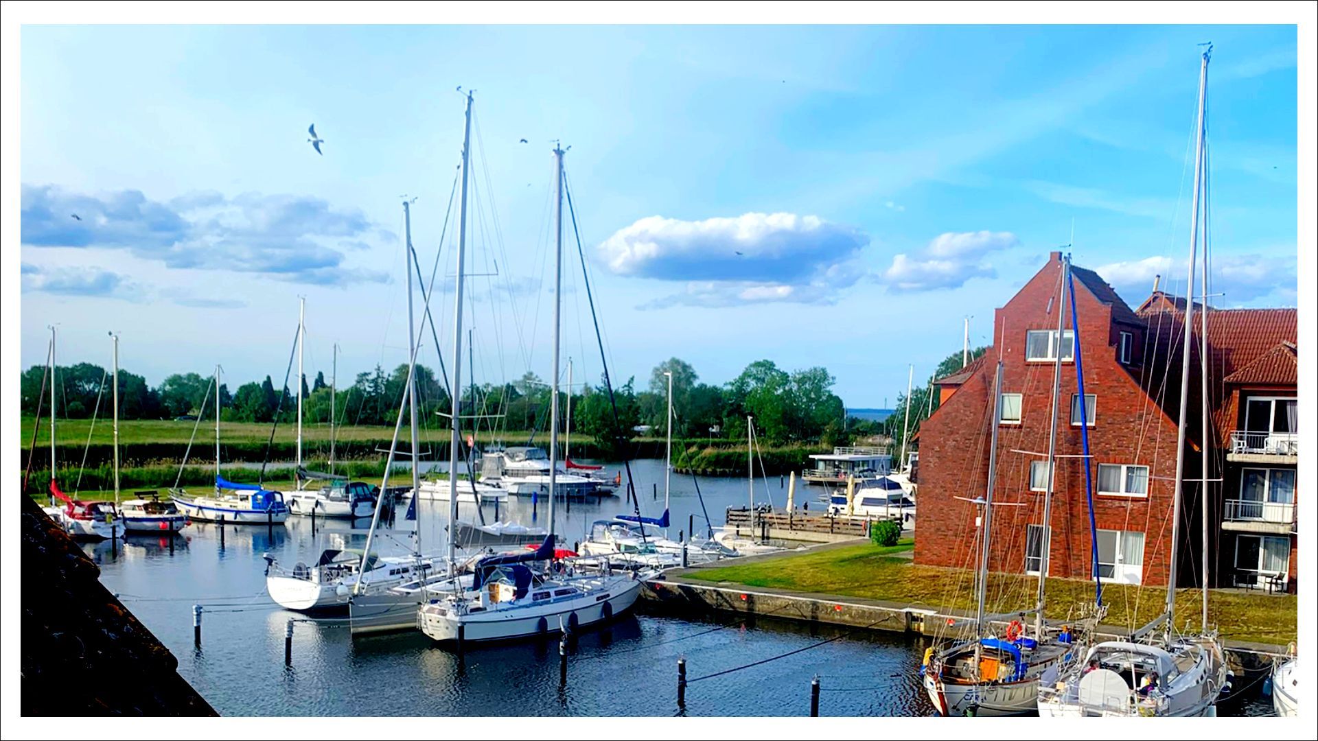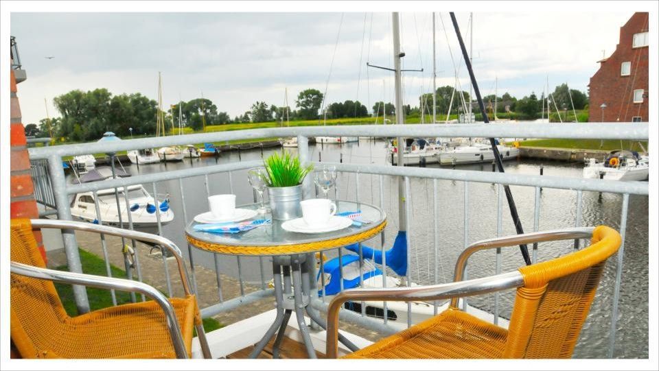 Genießen Sie vom Balkon aus einen einzigartigen Blick über den Hafen und die Hafeneinfahrt, die Uecker und in der Ferne das Stettiner Haff und die weite Küstenlandschaft - mit maritimer Stimmung von früh bis spät, perfekt für den ersten Kaffee am Morgen oder ein Glas Wein bei Sonnenuntergang.