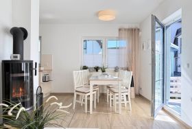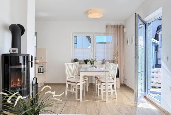 Der offene Wohn- und Essbereich ist das Herz des Hauses und bietet den perfekten Ort für entspannte Abende ob bei einem guten Buch, einem Spieleabend oder einem Glas Wein vor dem Kamin.