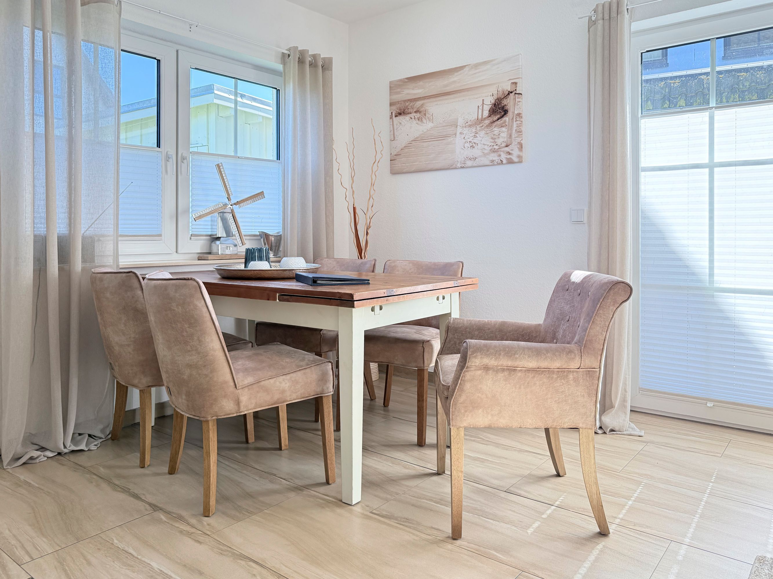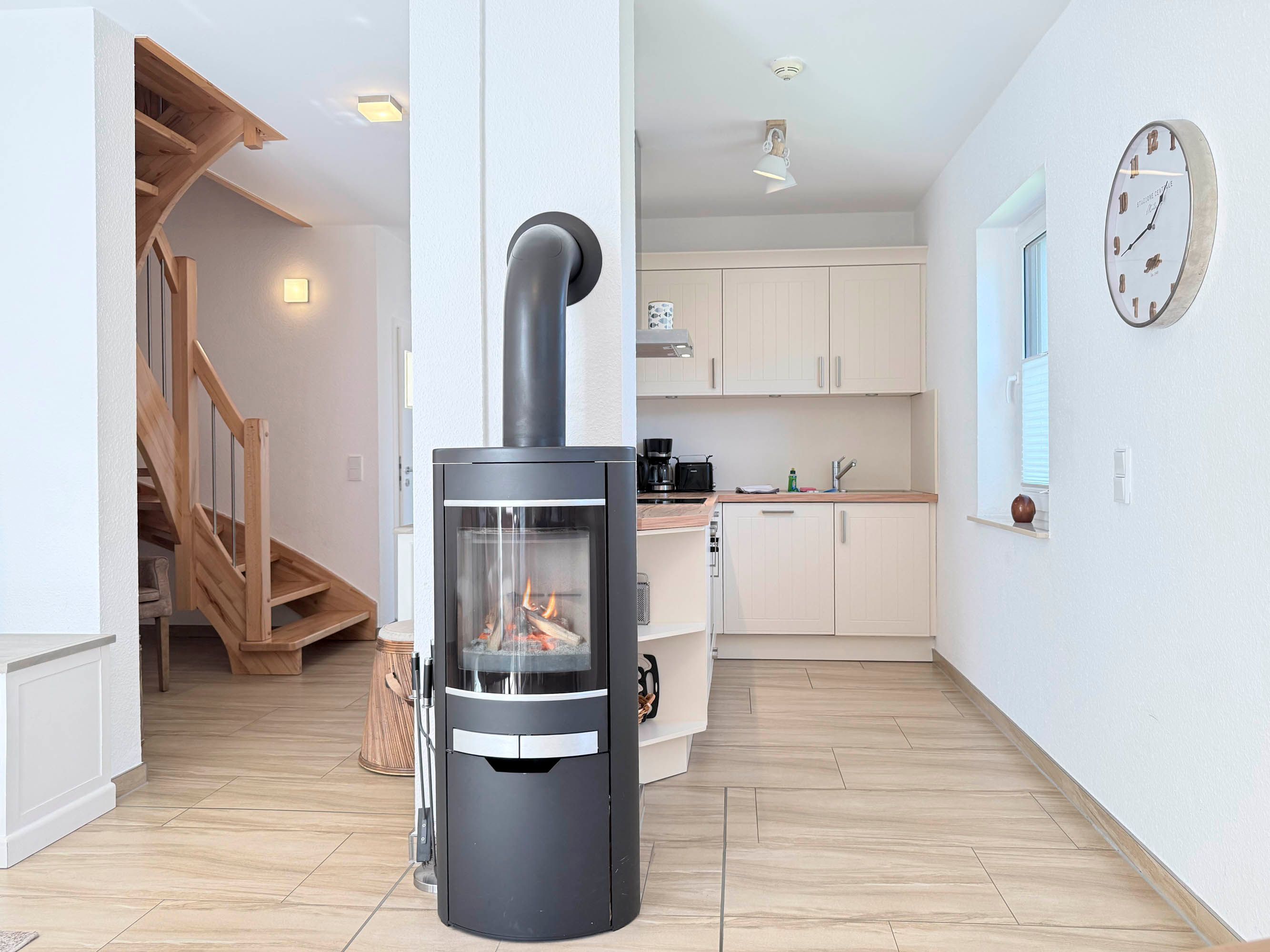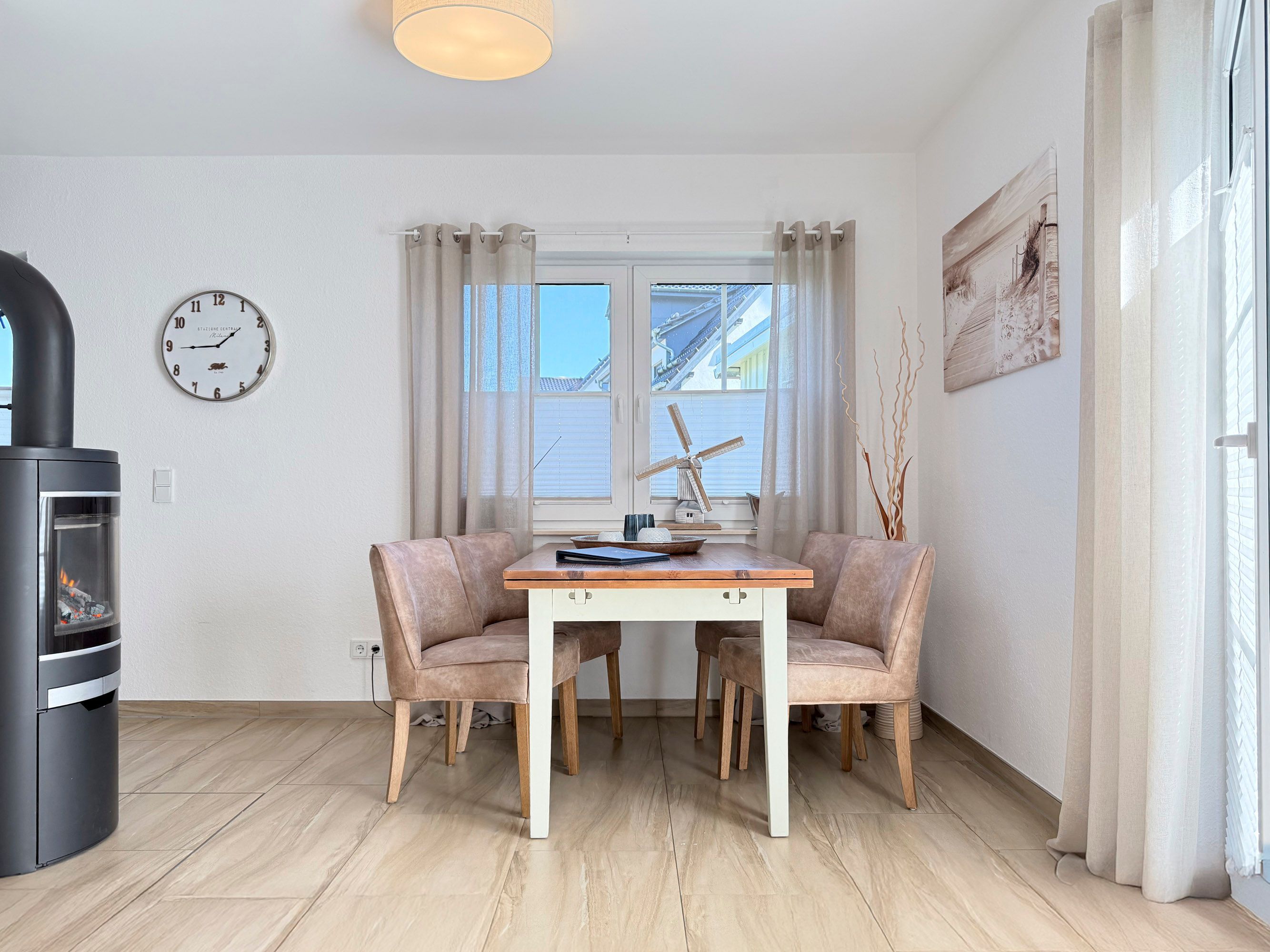 Der offene Wohn- und Essbereich ist das Herz des Hauses und bietet den perfekten Ort für entspannte Abende ob bei einem guten Buch, einem Spieleabend oder einem Glas Wein vor dem Kamin.