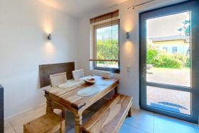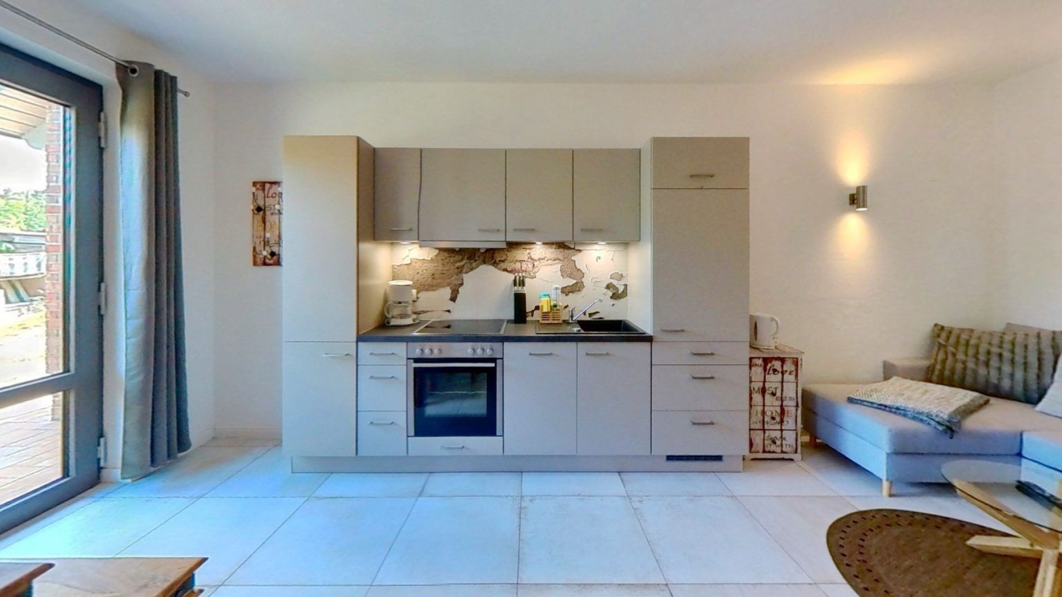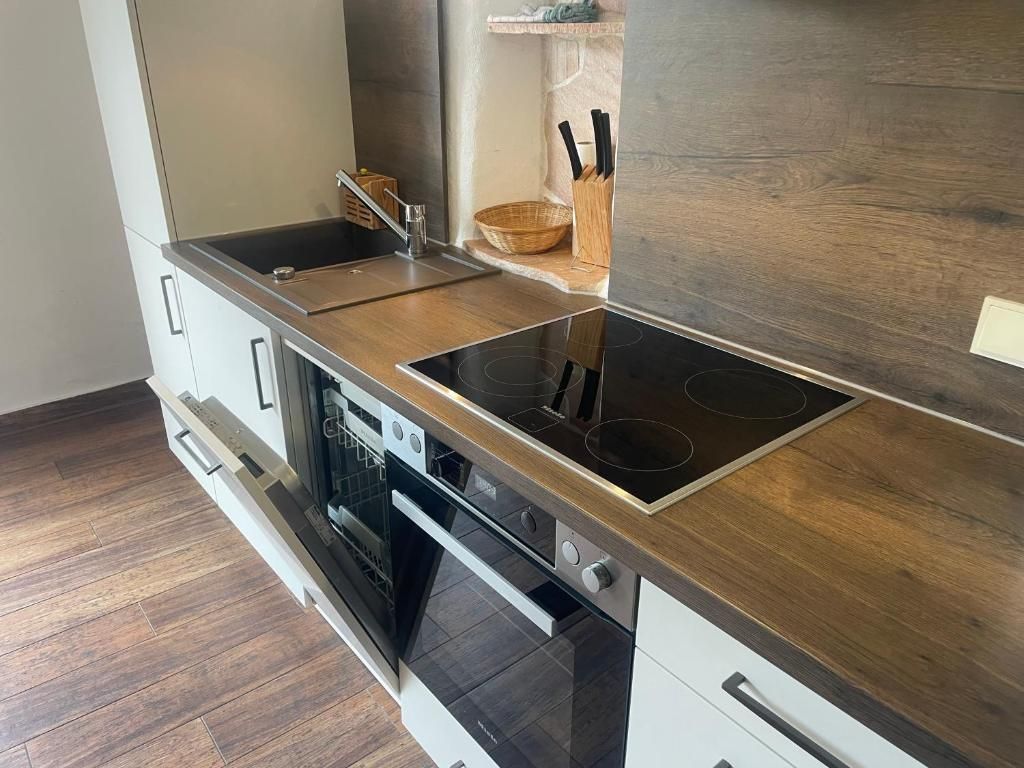 Im Erdgeschoss befindet sich eine gut ausgestattete Küche, die nahtlos in den Wohn- und Essbereich übergeht. Hier können Sie Ihre Lieblingsgerichte zubereiten und gleichzeitig gesellige Mahlzeiten mit Familie oder Freunden genießen.