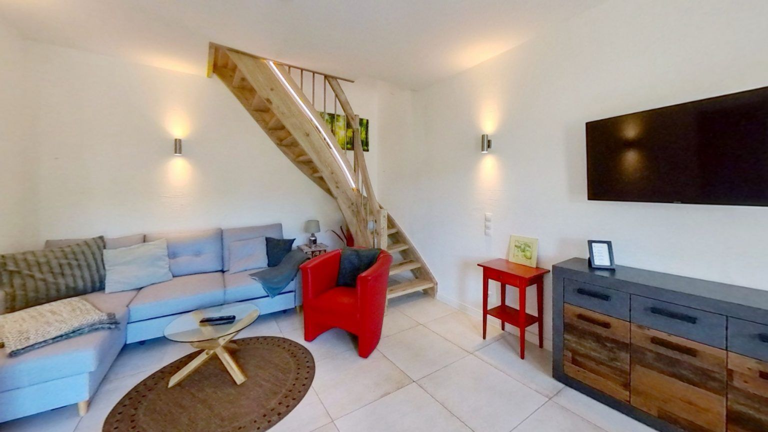 Die Ferienwohnung erstreckt sich über zwei Etagen und bietet eine durchdachte Raumaufteilung für maximalen Komfort.