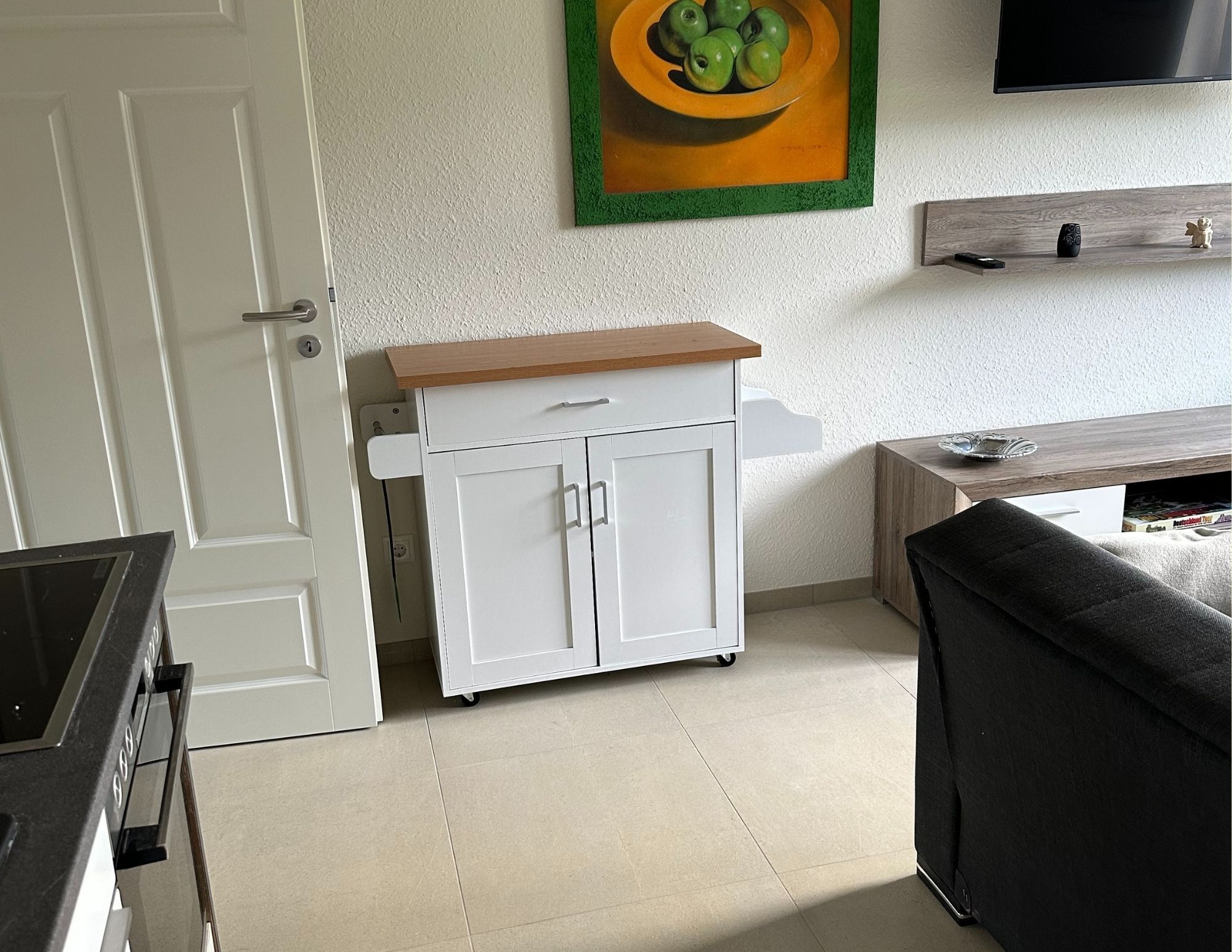 Die geschmackvoll eingerichtete Ferienwohnung liegt in der Gemeinde Rhauderfehn (Landkreis Leer) in Ostfriesland. Für den Aktivurlauber bietet die Region mit einem gut ausgebauten Radwegnetz einiges. Ein Spaziergang am Hahnentanger See ist auch in der Nähe möglich. Das Fehn- und Schiffahrtsmuseum in der schönen Jugendstilvilla Graepel vermittelt die spannende Geschichte der Fehntjer. Auch ein Besuch der historischen Mühle Hahnentange und die vielen Traditionsveranstaltungen wie z. B. das Rathausfest oder der Fehntjer Markt sind nur einige Highlights und sollten auf dem Programm stehen. Als größere Einkaufsstädte bieten sich die Städte Leer mit der historischen Altstadt an und Papenburg beeindruckt mit einer Führung der Meyer Werft über die großen Kreuzfahrtschiffe.