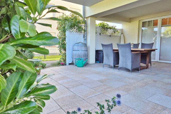 Eigener PKW-Stellplatz am Haus. Eine teilüberdachte Terrasse in süd-östlicher Richtung mit Sonnenschirm steht Ihnen zur Verfügung. Kostenloser W-Lan Anschluss. Fahrräder können auf der Terrasse abgestellt werden.