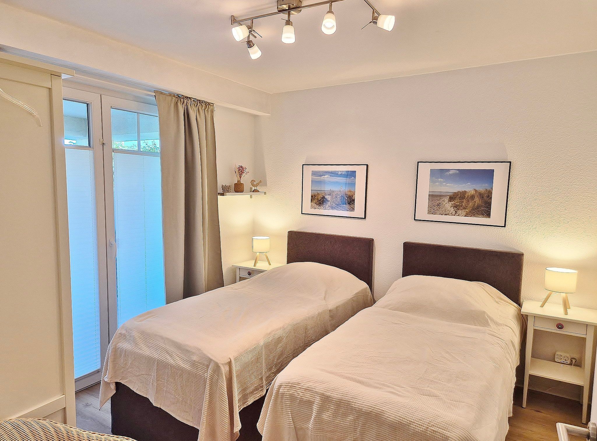 Das Zimmer ist mit einem Schrank und mit zwei Einzelbetten (2x90x200cm) ausgestattet. Das Fenster lässt sich vollständig verdunkeln.