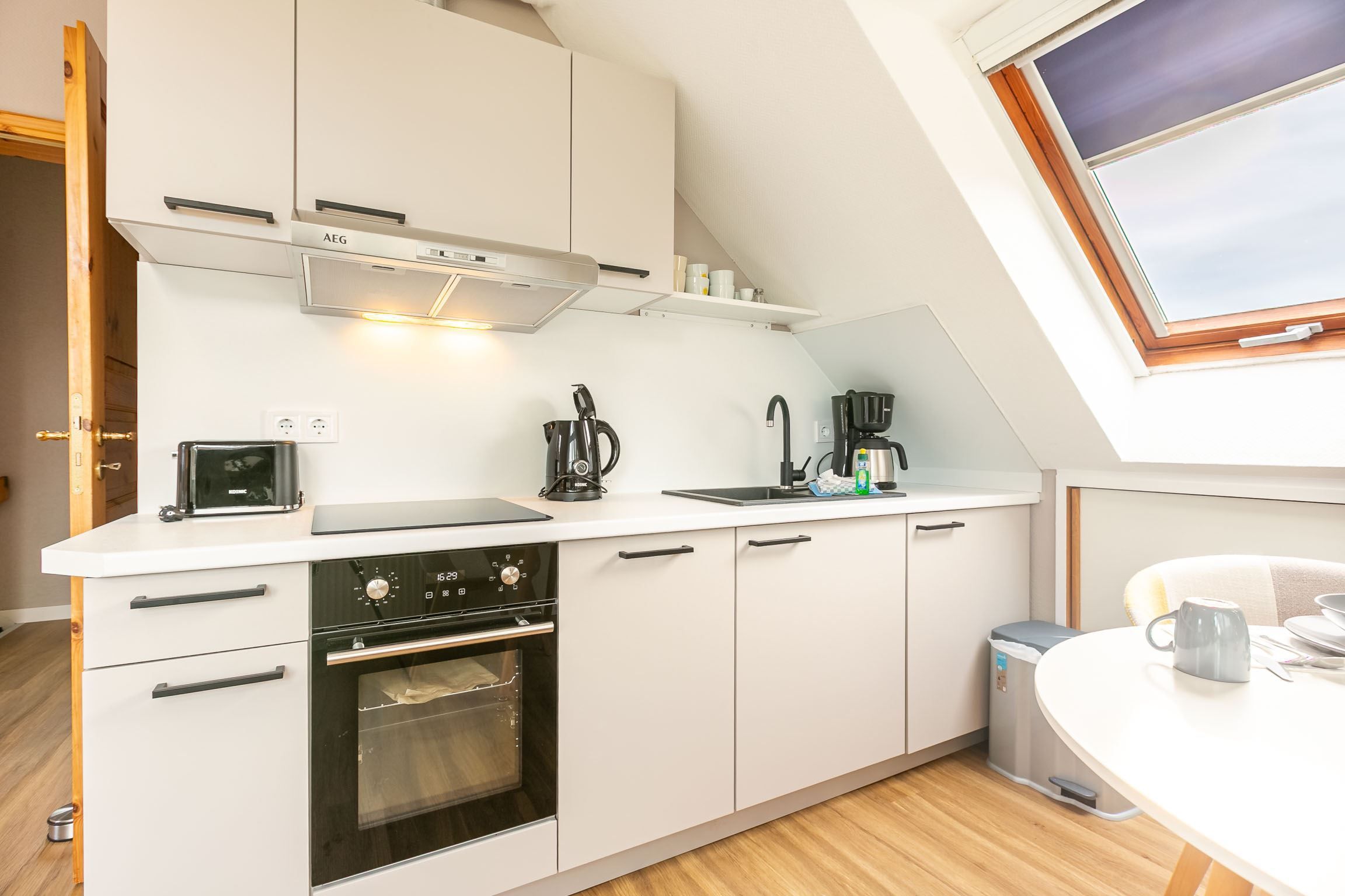 Exklusives Studio-Appartement Kleine Bö 5 im Haus Kleine Bö mit 1 Zimmer und ca. 32 m² auf 2 Ebenen (EG, OG) für bis zu 2 Personen. In ruhiger Lage nah zum Deich der Eider in der Hafenstadt Tönning bei Sankt Peter-Ording. Der ideale Erholungsort für eine Auszeit fernab des Trubels mitten in der Natur des Weltnaturerbes Wattenmeer. Bis zu zwei Hunde sind nach Anmeldung herzlich willkommen.