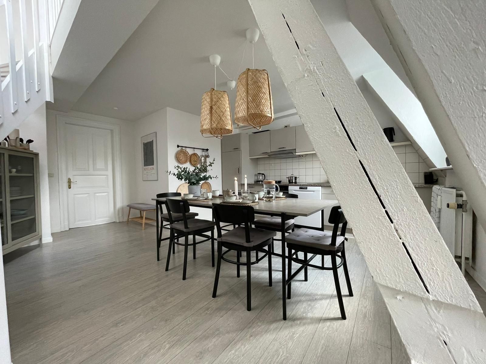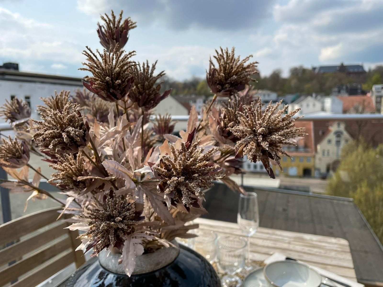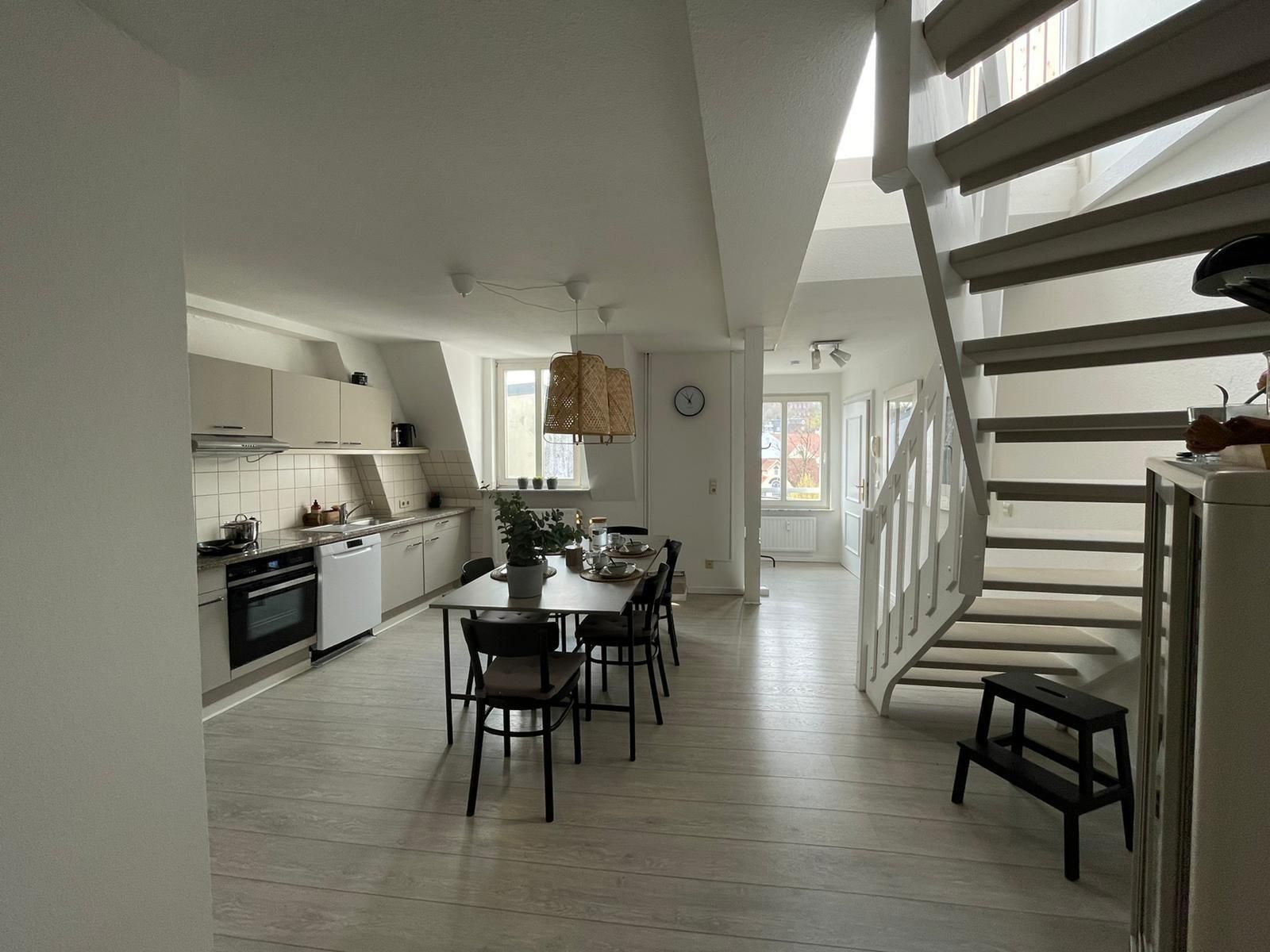 Wunderschön direkt an der Hafenspitze gelegen bietet diese im maritimen Still eingerichtete Altbauwohnung über 2 Etagen, einen unvergesslichen Blick über die Altstadt, bis zum Museumsberg und die Segel des Hafens. Auf der Unteren Ebene bietet die Wohnung Wohnzimmer, Badezimmer mit Marmor Armaturen und eine offene voll ausgestattet Wohnküche. Auf der zweiten Etage, liegen die beiden separaten Schlafzimmer die Platz für 4 Personen bieten und eine Dachterrasse mit einem schönen Blick über die Dächer der Altstadt von Flensburg.