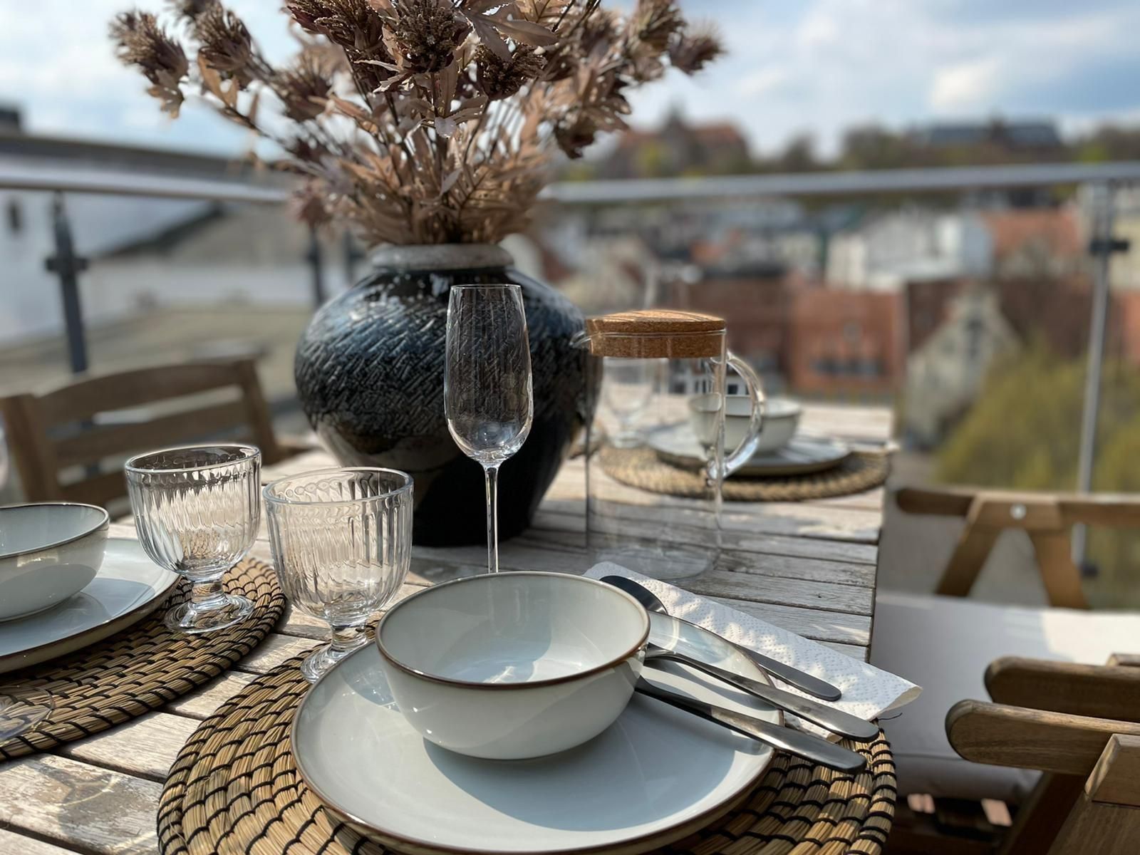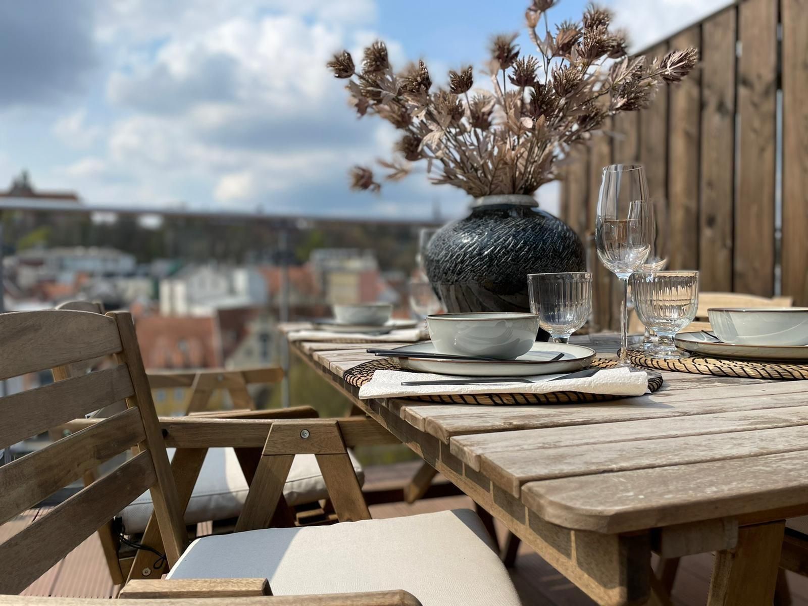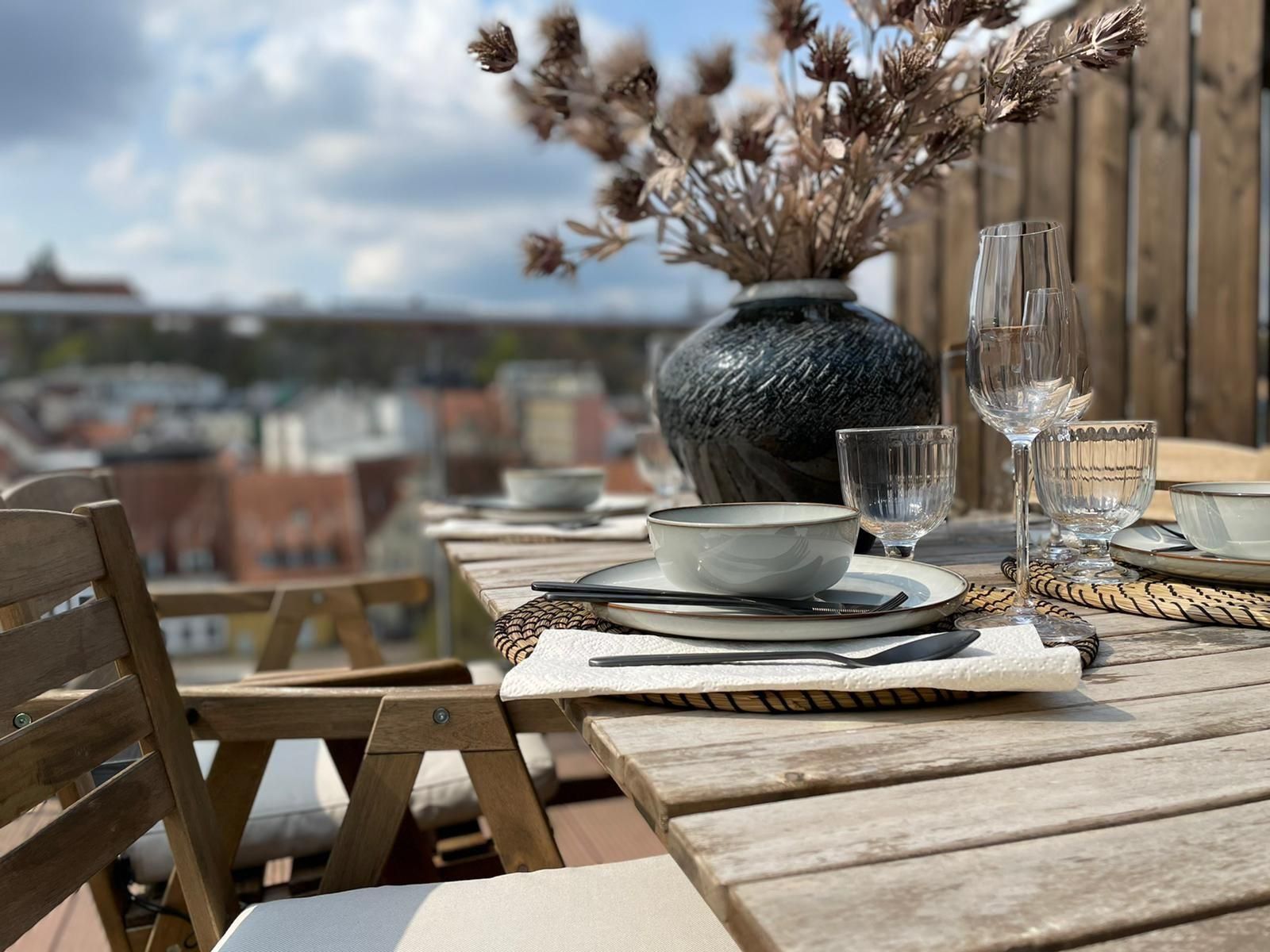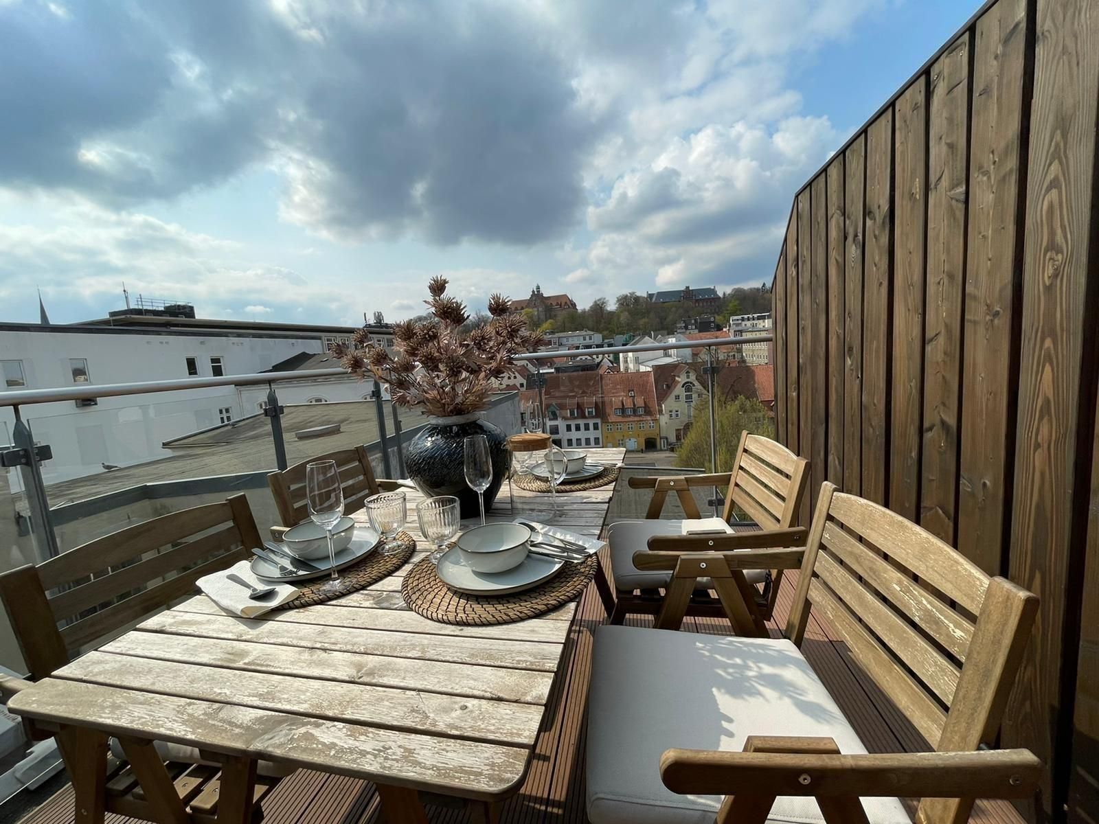 Wunderschön direkt an der Hafenspitze gelegen bietet diese im maritimen Still eingerichtete Altbauwohnung über 2 Etagen, einen unvergesslichen Blick über die Altstadt, bis zum Museumsberg und die Segel des Hafens. Auf der Unteren Ebene bietet die Wohnung Wohnzimmer, Badezimmer mit Marmor Armaturen und eine offene voll ausgestattet Wohnküche. Auf der zweiten Etage, liegen die beiden separaten Schlafzimmer die Platz für 4 Personen bieten und eine Dachterrasse mit einem schönen Blick über die Dächer der Altstadt von Flensburg.