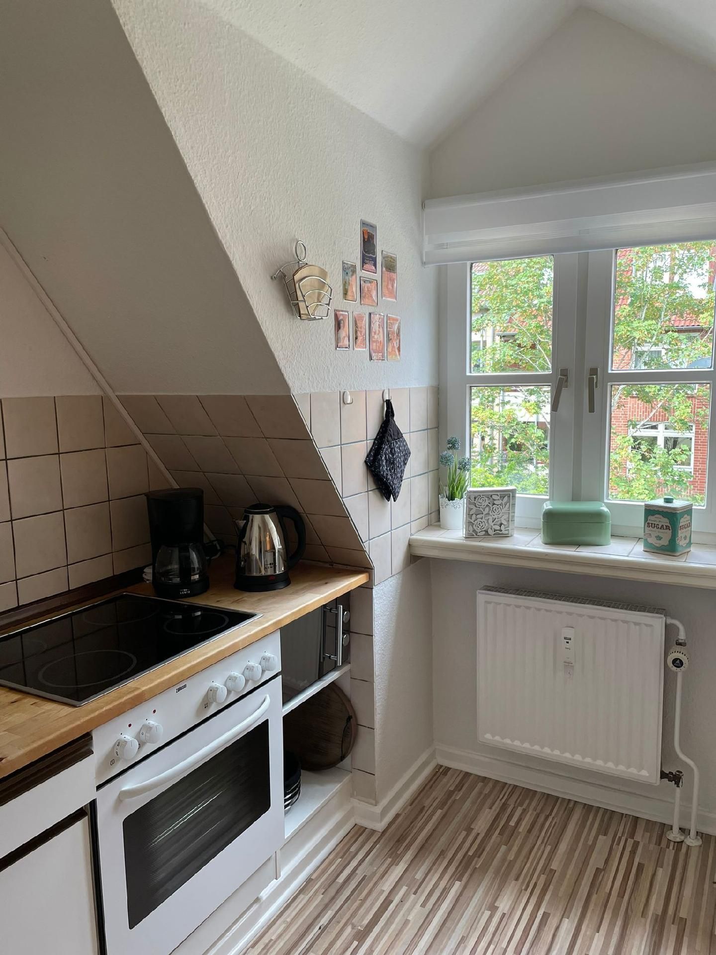 Der Außenbereich der Wohnung ist ebenso bezaubernd. Gelegen in einer ruhigen Seitengasse zwischen dem lebhaften Hafen und dem historischen Nordermarkt, bietet die Lage einen idyllischen Rückzugsort mitten im Stadtkern. Die direkte Umgebung ist geprägt von der entspannten, maritimen Atmosphäre des Hafens und der historischen Schönheit alter Flensburger Fassaden, was den Außenbereich zu einem wahren Highlight macht.