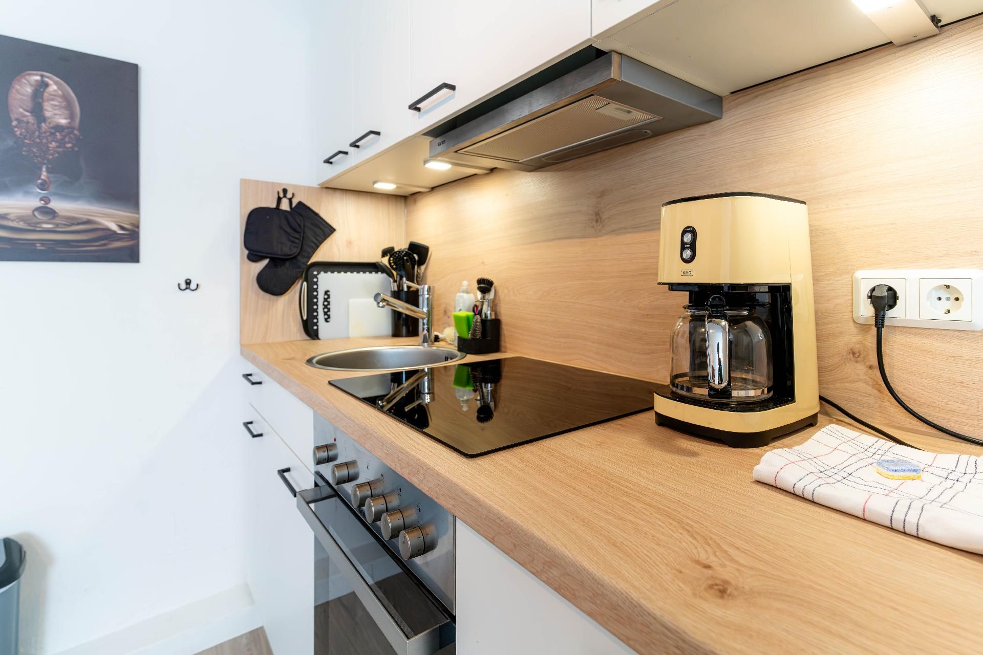 Kochen: Backofen; Ceranherd; Gefrierfach; Kaffeemaschine; Kühlschrank; Mikrowelle; Spülmaschine; Toaster; Wasserkocher