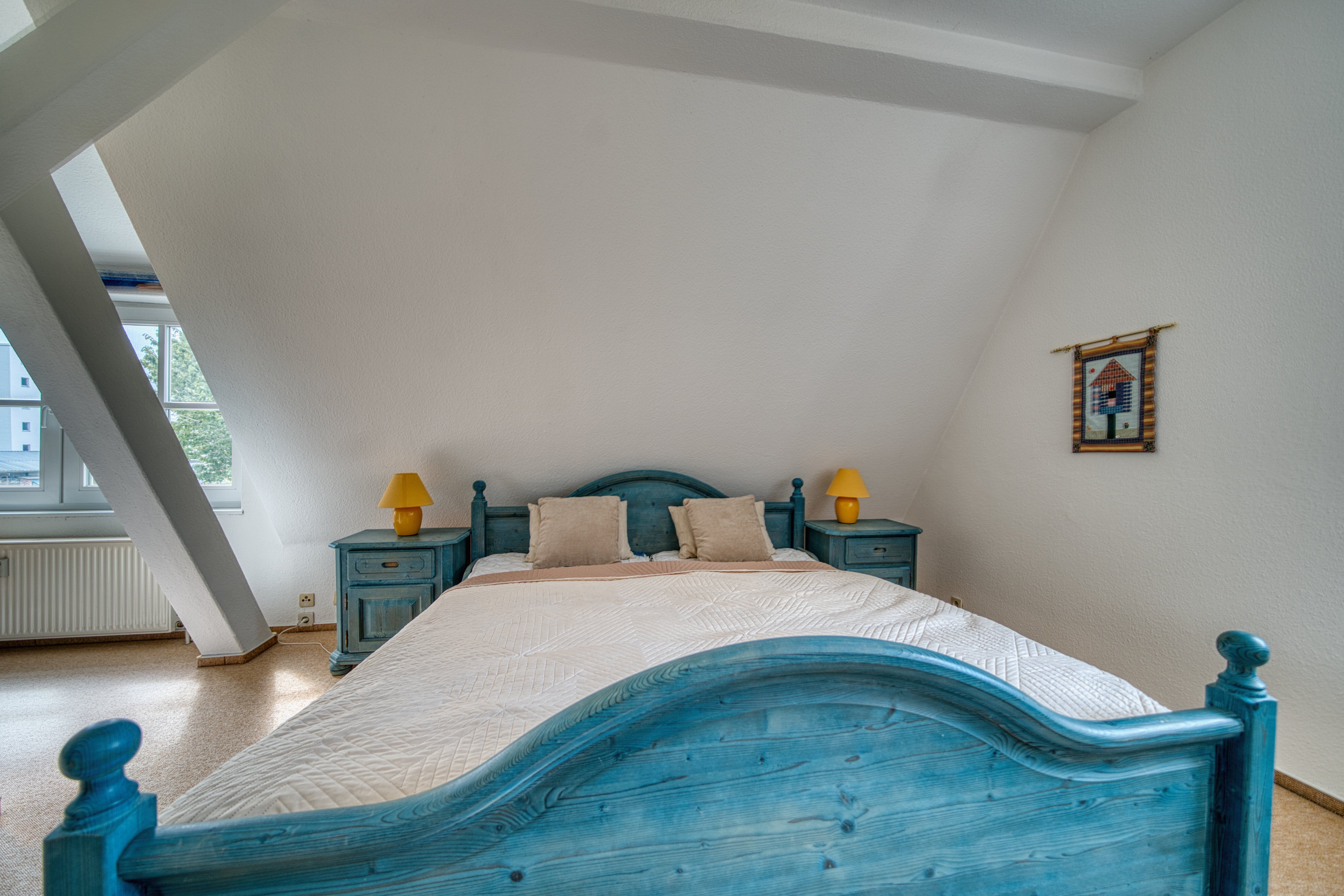 Obergeschoss: Im Obergeschoss befinden sich die hellen Schlafräume. Das Elternschlafzimmer ist mit einem komfortablen Doppelbett und einem großen Kleiderschrank ausgestattet. Im Kinderzimmer finden Sie zwei Einzelbetten und einen kleinen Schreibtisch. Ein weiteres Badezimmer mit einer Badewanne sorgt für zusätzlichen Komfort und Entspannung nach einem langen Tag am Strand. Alle Räume und Bäder sind dank großer Fenster lichtdurchflutet und schaffen eine einladende, wohnliche Atmosphäre.