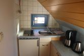 Die gemütliche 25 qm große Ferienwohnung befindet sich im Obergeschoß und ist mit einem Doppelbett (140 cm breit) und einem Schrankbett ausgestattet. Die kleine Küchenzeile verfügt über ein Kochfeld mit 2 Herdplatten, Kaffeemaschine, Toaster, Wasserkocher und Kühlschrank mit TK-Fach. Im Wohn- u. Schlafbereich befindet sich 1 Radio und Sat-TV sowie 1 Kleiderschrank. Von hier aus gelangen Sie in das geräumige Bad mit Dusche u. WC. Auf der gemütlichen Terrasse haben Sie die Möglichkeit am Abend den schönen Sonnenuntergang über der Ostsee bei einem gläschen Wein zu genießen.
