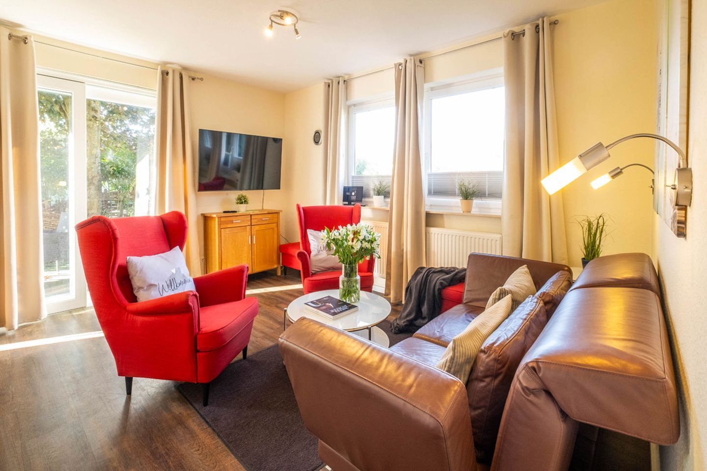 Die Terrasse im Erdgeschoss ist ideal, um die frische Nordseeluft zu genießen oder einen entspannten Tagesausklang zu verbringen. Der zur Wohnung gehörende Parkplatz gewährleistet, dass Sie Ihr Fahrzeug sicher und bequem abstellen können.