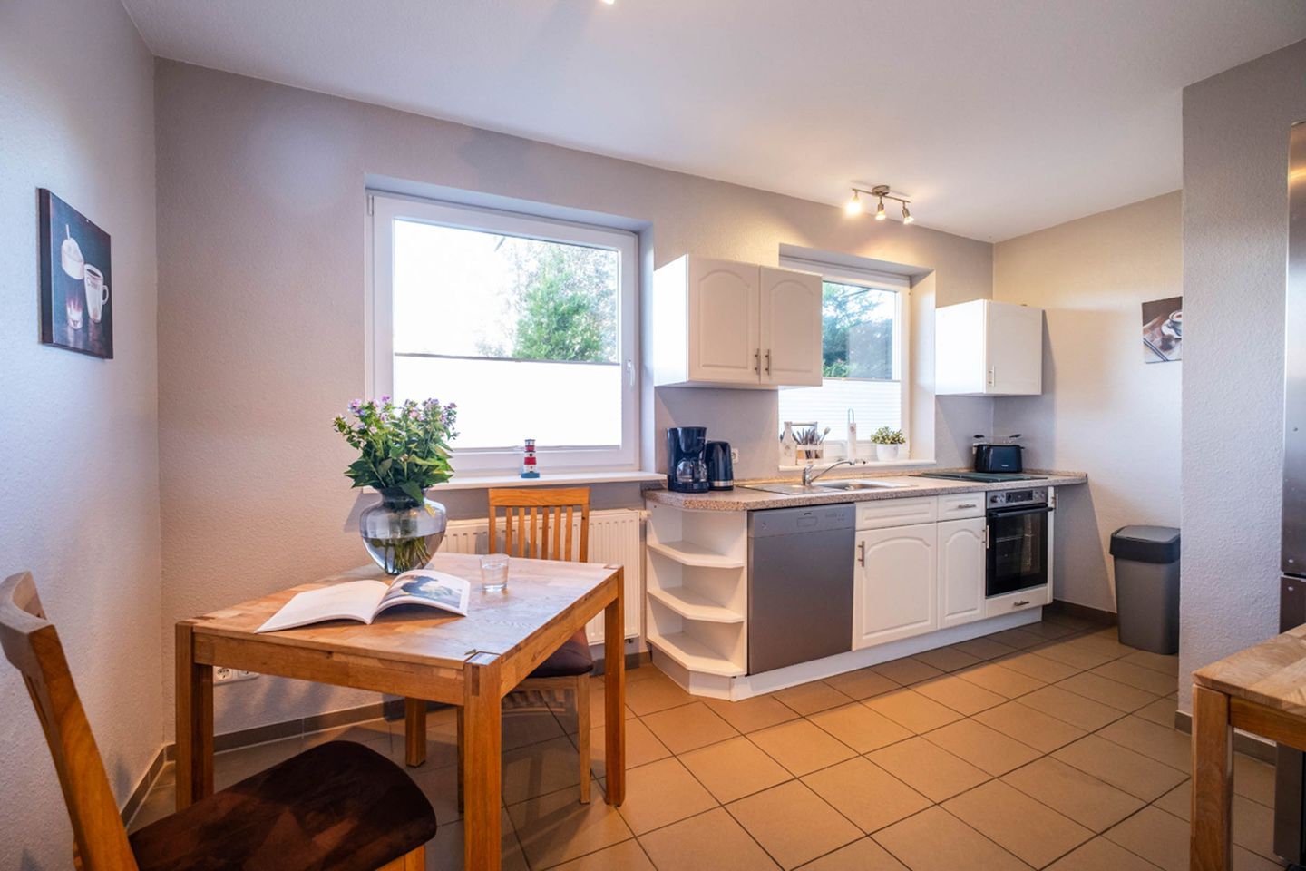 Die beiden Badezimmer sind modern gestaltet und mit bodengleichen Duschen versehen. Ein Haartrockner steht zur Verfügung. Die Nutzung von Waschmaschine und Trockner ist gemeinschaftlich geregelt. Ab dem Winter 2025 steht Ihnen im Haus Köhler (Regenpfeiferweg 5) eine Waschmaschine und auch ein Trockner zur Verfügung.