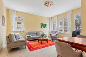 Urlaub in der Villa Lebensart Bäderarchitektur direkt am Meer. Nur wenige Schritte vom Strand entfernt, empfängt Sie die Villa Lebensart in bester Lage an der Ahlbecker Promenade. Das Haus wurde 2007 im Stil der klassischen Bäderarchitektur erbaut so harmonisch, dass es sich kaum von den historischen Villen der Kaiserbäder unterscheiden lässt. Hinter der traditionellen Fassade erwartet Sie moderner Komfort, der keine Wünsche offenlässt. Im Inneren verbinden hochwertige Materialien wie Granit, Echtholzparkett und maßgefertigte Holzfenster zeitlose Eleganz mit Langlebigkeit. Ein Aufzug bringt Sie bequem in alle Etagen. Herzstück des Hauses ist der Wellnessbereich mit Schwimmbad (8m x 3,85m), Finnischer Sauna, Infrarotkabine, Klimaanlage, Ruheraum und direktem Zugang zur sonnigen Terrasse perfekt zum Entspannen nach einem Tag am Meer. Das fast 1000 Quadratmeter große, eingezäunte Grundstück ist nur für Hausgäste zugänglich. Auf der Südterrasse stehen Strandkorb, Sonnenschirm und Sitzmöbel bereit. Die Lage in der zweiten Düne sorgt für Ruhe und Privatsphäre, während der feinsandige Ostseestrand nur wenige Schritte entfernt liegt. Genießen Sie die besondere Atmosphäre eines Hauses, das den Charme vergangener Zeiten mit dem Komfort von heute vereint für unvergessliche Urlaubstage in Ahlbeck.