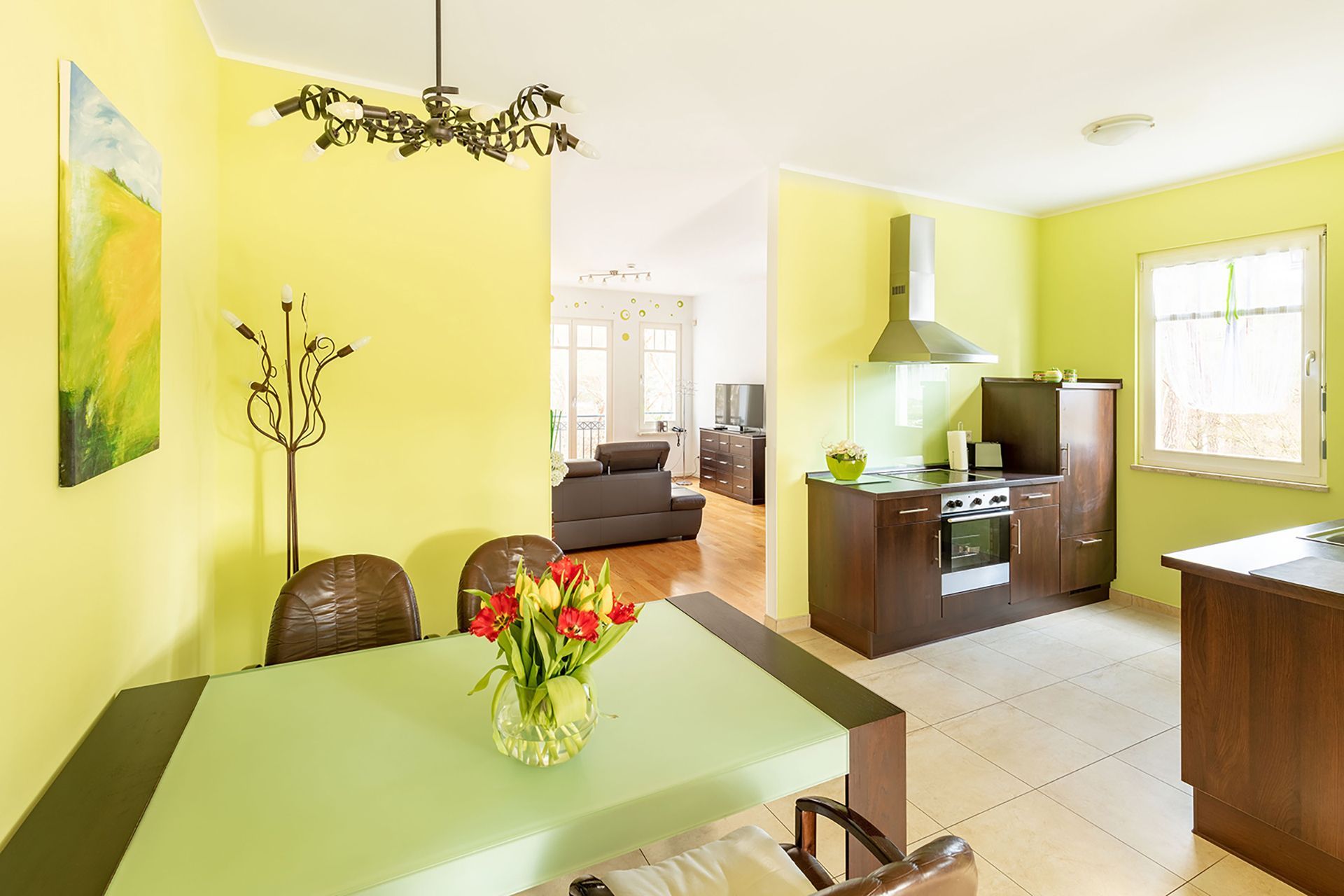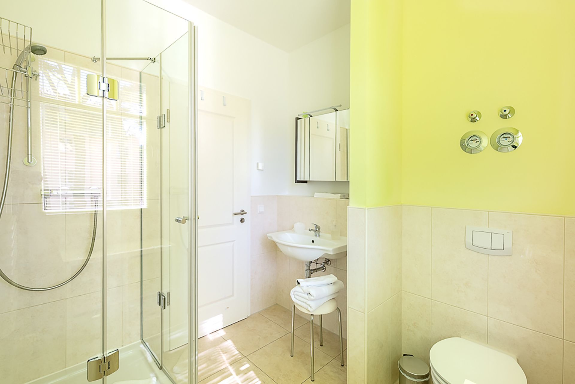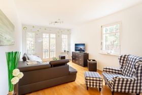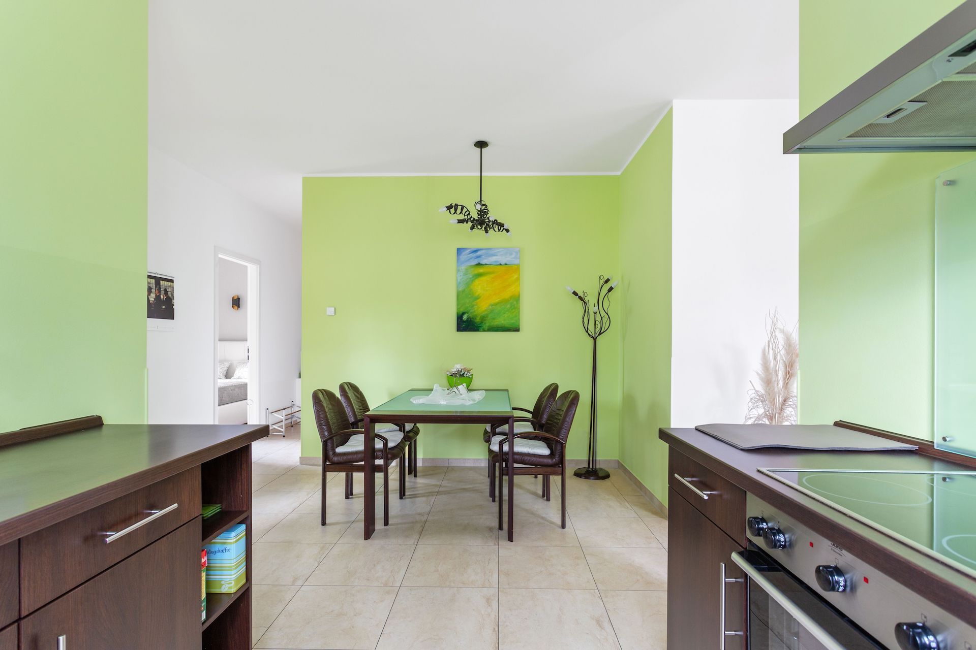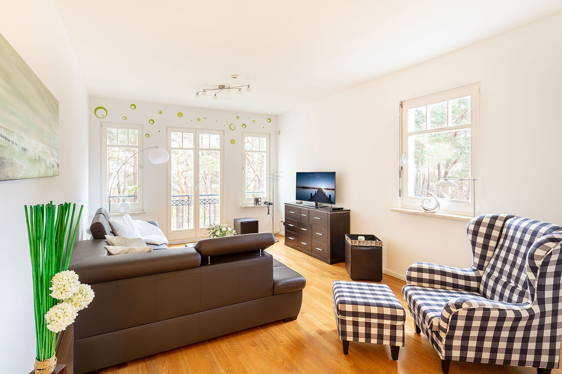 Willkommen im 78 m² großen 3-Raum-Apartment Wollin, Ihrem großzügigen Rückzugsort in der 2. Etage stilvoll, modern und mit frischen grünen Akzenten, die sofort Urlaubslaune verbreiten. Genießen Sie vom gemütlichen Ohrensessel durch bodentiefe Fenster den Blick zur Ostsee hier beginnt jeder Tag mit einer frischen Meeresbrise. Auf dem sonnigen Südbalkon schauen Sie über einen kleinen, grünen Park und lassen den Alltag weit hinter sich. Das große Schlafzimmer verwöhnt Sie mit einem komfortablen Boxspringbett (1,80 m breit) und einem geräumigen 2-m-Kleiderschrank. Das zweite Schlafzimmer, von dem Sie direkt auf den Balkon treten, bietet ein 1,40 m breites Boxspringbett perfekt für einen Erwachsenen oder zwei Kinder. Das helle Tageslichtbad mit Dusche, Waschtisch und Spiegelschrank sorgt für einen frischen Start in den Tag. Die moderne Küche mit Fenster ist offen zum separaten Essplatz gestaltet und vollständig für 4 Personen ausgestattet ideal für gesellige Runden nach einem Strandtag. Echtholzparkett, Fußbodenheizung und wärmereflektierende Sonnenschutzrollos an allen Fenstern zur Ost- und Südseite schaffen zu jeder Jahreszeit Wohlfühlatmosphäre. Ein PKW-Stellplatz am Haus ist selbstverständlich inklusive. Hier erwartet Sie ein Platz zum Ankommen, Durchatmen und Genießen nur einen Wimpernschlag von der Ostsee entfernt.
