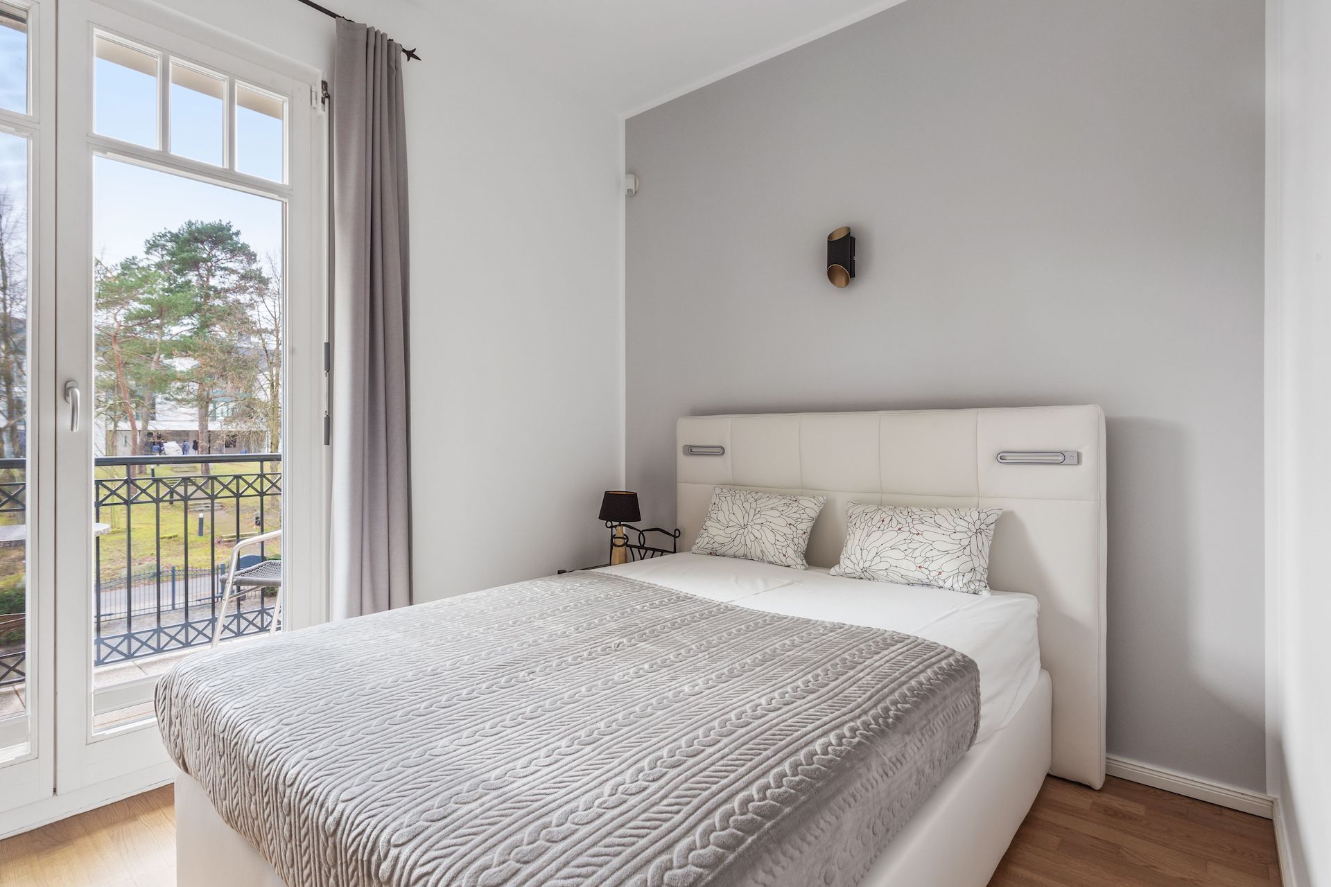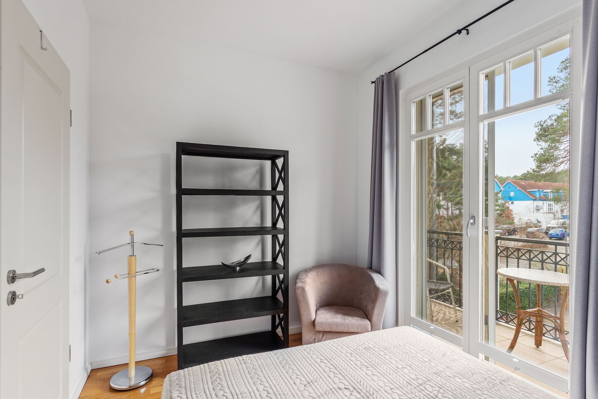 Willkommen im 78 m² großen 3-Raum-Apartment „Wollin“, Ihrem großzügigen Rückzugsort in der 2. Etage stilvoll, modern und mit frischen grünen Akzenten, die sofort Urlaubslaune verbreiten. Genießen Sie vom gemütlichen Ohrensessel durch bodentiefe Fenster den Blick zur Ostsee hier beginnt jeder Tag mit einer frischen Meeresbrise. Auf dem sonnigen Südbalkon schauen Sie über einen kleinen, grünen Park und lassen den Alltag weit hinter sich. Das große Schlafzimmer verwöhnt Sie mit einem komfortablen Boxspringbett (1,80 m breit) und einem geräumigen 2-m-Kleiderschrank. Das zweite Schlafzimmer, von dem Sie direkt auf den Balkon treten, bietet ein 1,40 m breites Boxspringbett perfekt für einen Erwachsenen oder zwei Kinder. Das helle Tageslichtbad mit Dusche, Waschtisch und Spiegelschrank sorgt für einen frischen Start in den Tag. Die moderne Küche mit Fenster ist offen zum separaten Essplatz gestaltet und vollständig für 4 Personen ausgestattet ideal für gesellige Runden nach einem Strandtag. Echtholzparkett, Fußbodenheizung und wärmereflektierende Sonnenschutzrollos an allen Fenstern zur Ost- und Südseite schaffen zu jeder Jahreszeit Wohlfühlatmosphäre. Ein PKW-Stellplatz am Haus ist selbstverständlich inklusive. Hier erwartet Sie ein Platz zum Ankommen, Durchatmen und Genießen nur einen Wimpernschlag von der Ostsee entfernt.