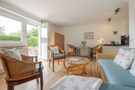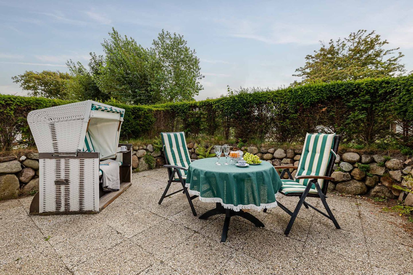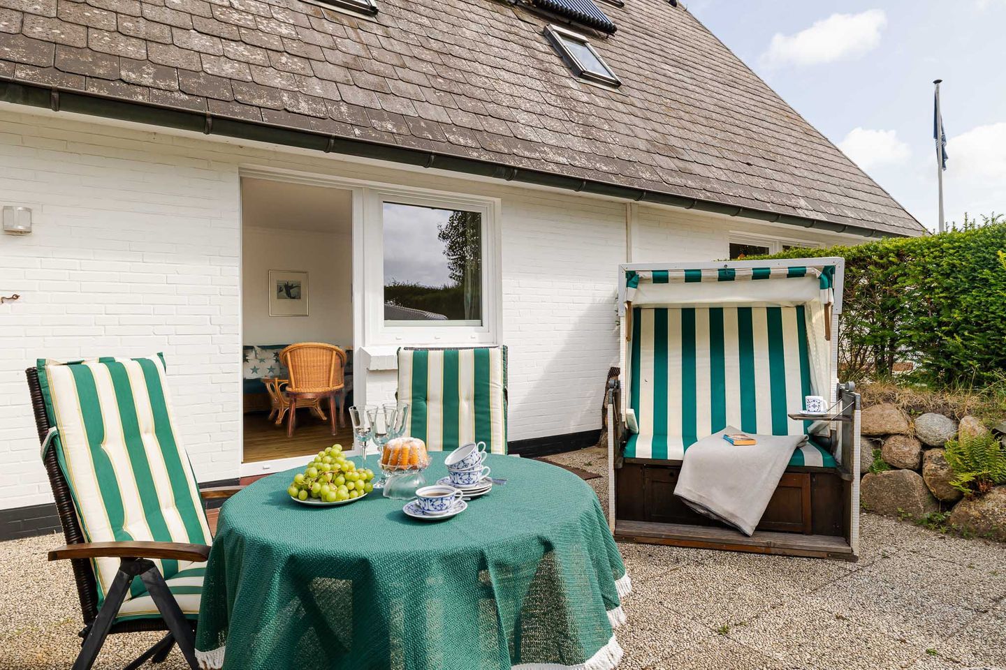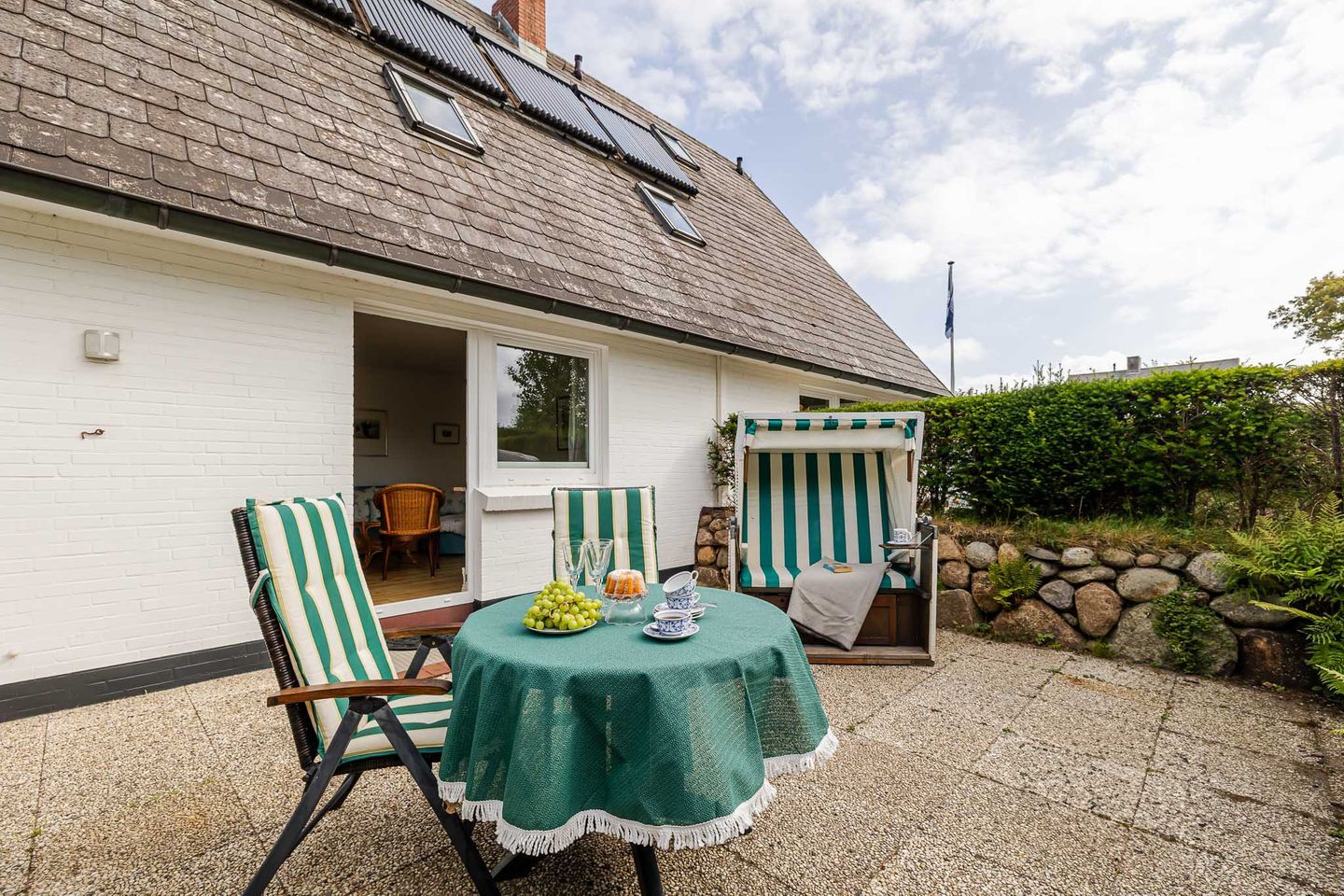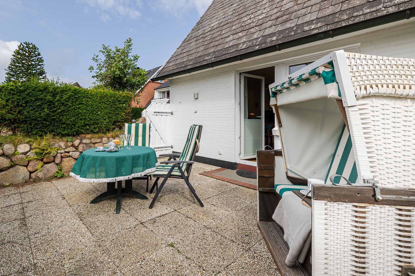 Ein besonderes Highlight ist die sonnige Südterrasse mit Gartenmöbeln und eigenem Strandkorb, auf der Sie vom Frühstück in der Morgensonne bis zum entspannten Abend die frische Nordseeluft genießen können. Ihr reservierter Parkplatz direkt am Haus sorgt für eine bequeme Anreise.