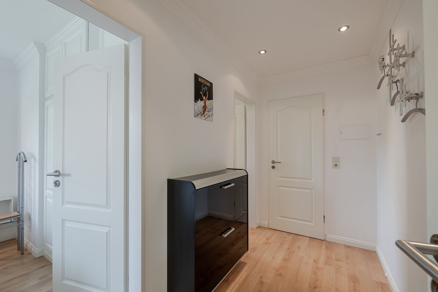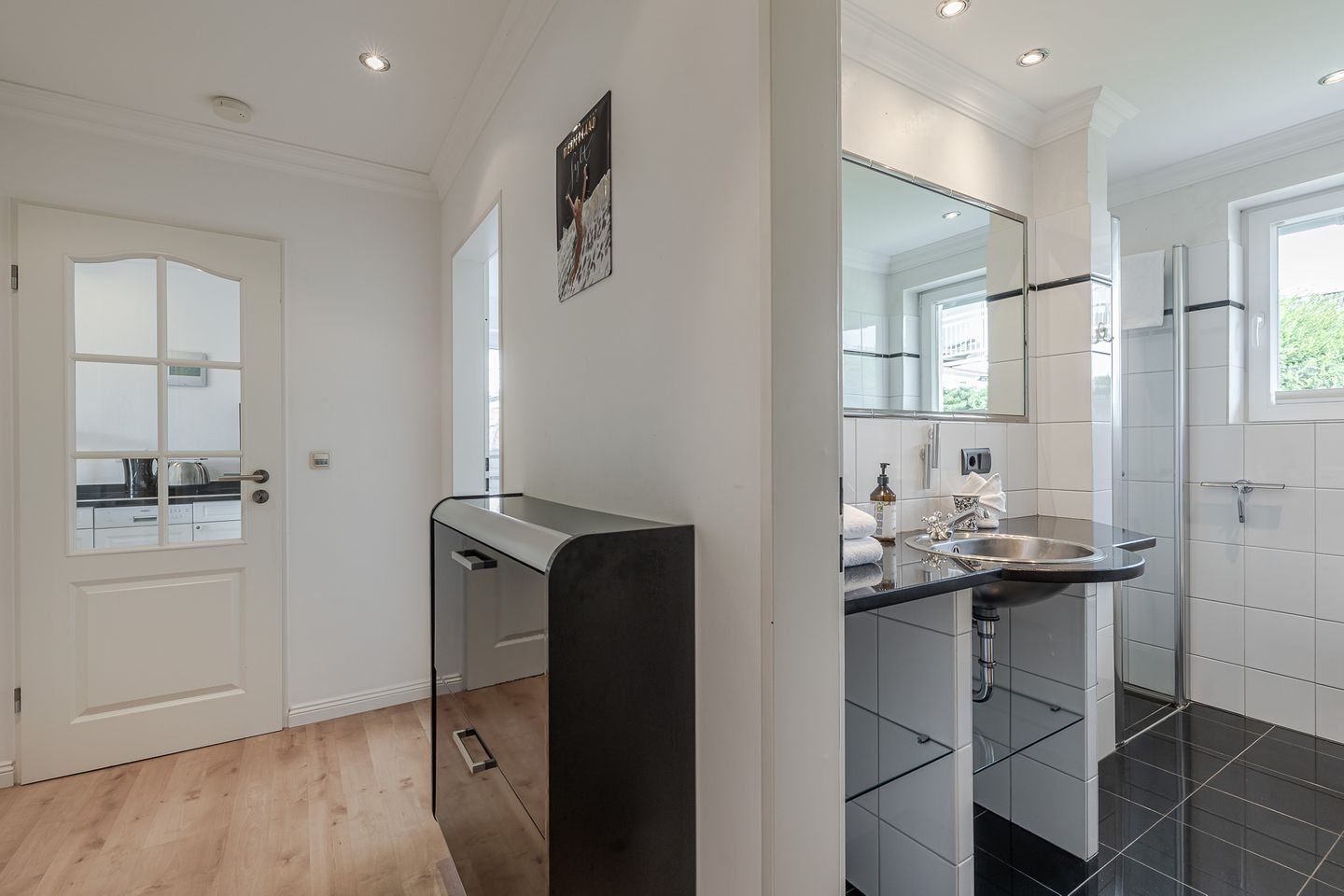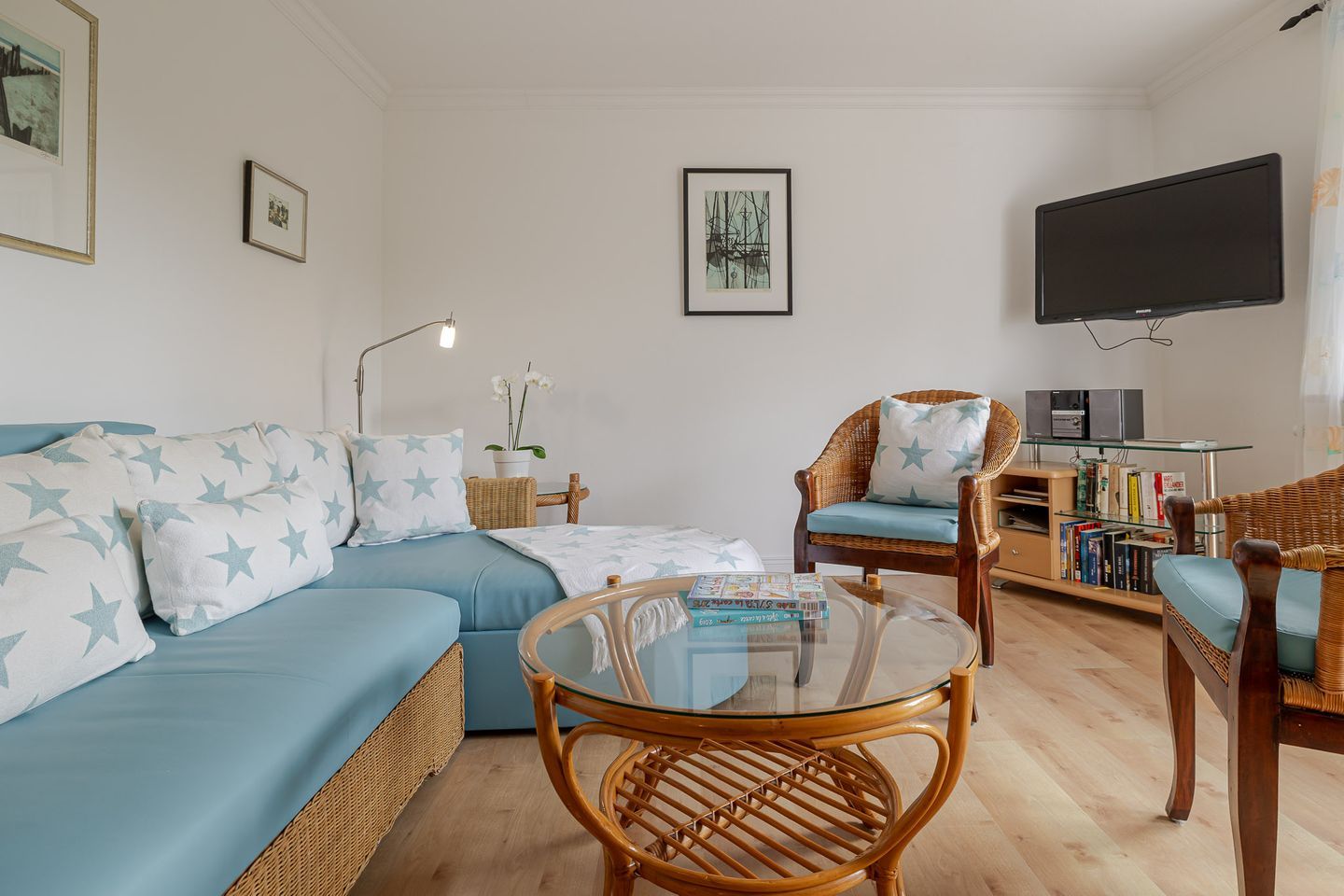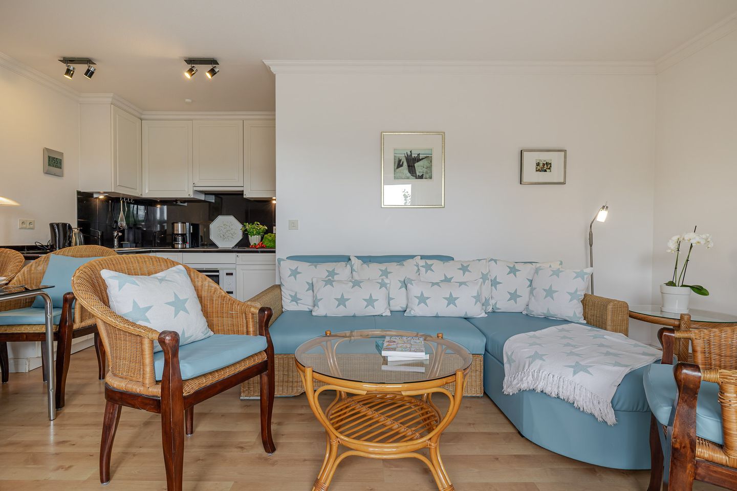 Die Ferienwohnung Meer bietet den idealen Rahmen für einen entspannten Sylt-Urlaub zu zweit. Modern, komfortabel und liebevoll eingerichtet, erwartet Sie ein separates Schlafzimmer, ein gemütliches Wohnzimmer mit großzügiger Küchenzeile sowie ein Badezimmer mit Dusche/WC. Für zusätzlichen Komfort befindet sich im Wohnraum ein breites Federkern-Schrankbett – perfekt, falls Sie einmal flexibel übernachten möchten.