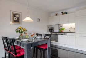 Die charmante Ferienwohnung Muschel im Erdgeschoss wurde modern und gemütlich eingerichtet und bietet Platz für 2 Personen. Sie verfügt über ein separates Schlafzimmer, ein freundliches Wohnzimmer mit offener, voll ausgestatteter Küchenzeile samt Backofen und Spülmaschine sowie ein Badezimmer mit Dusche/WC. Durch die Fußbodenheizung genießen Sie auch an kühleren Tagen angenehme Wärme.