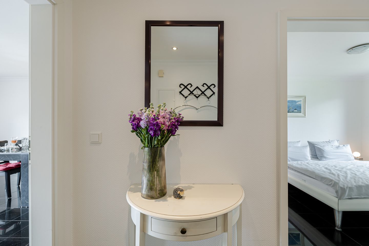 Ein eigener, kostenloser Parkplatz direkt am Haus steht Ihnen selbstverständlich zur Verfügung. Die Ferienwohnung Muschel kombiniert modernen Komfort, eine gepflegte Ausstattung und eine persönliche Atmosphäre – genau richtig für einen erholsamen Urlaub zu zweit.