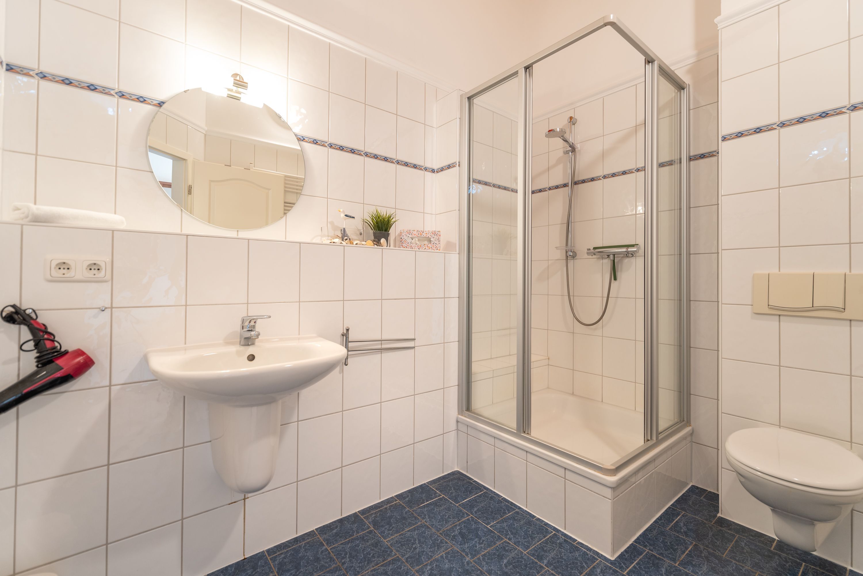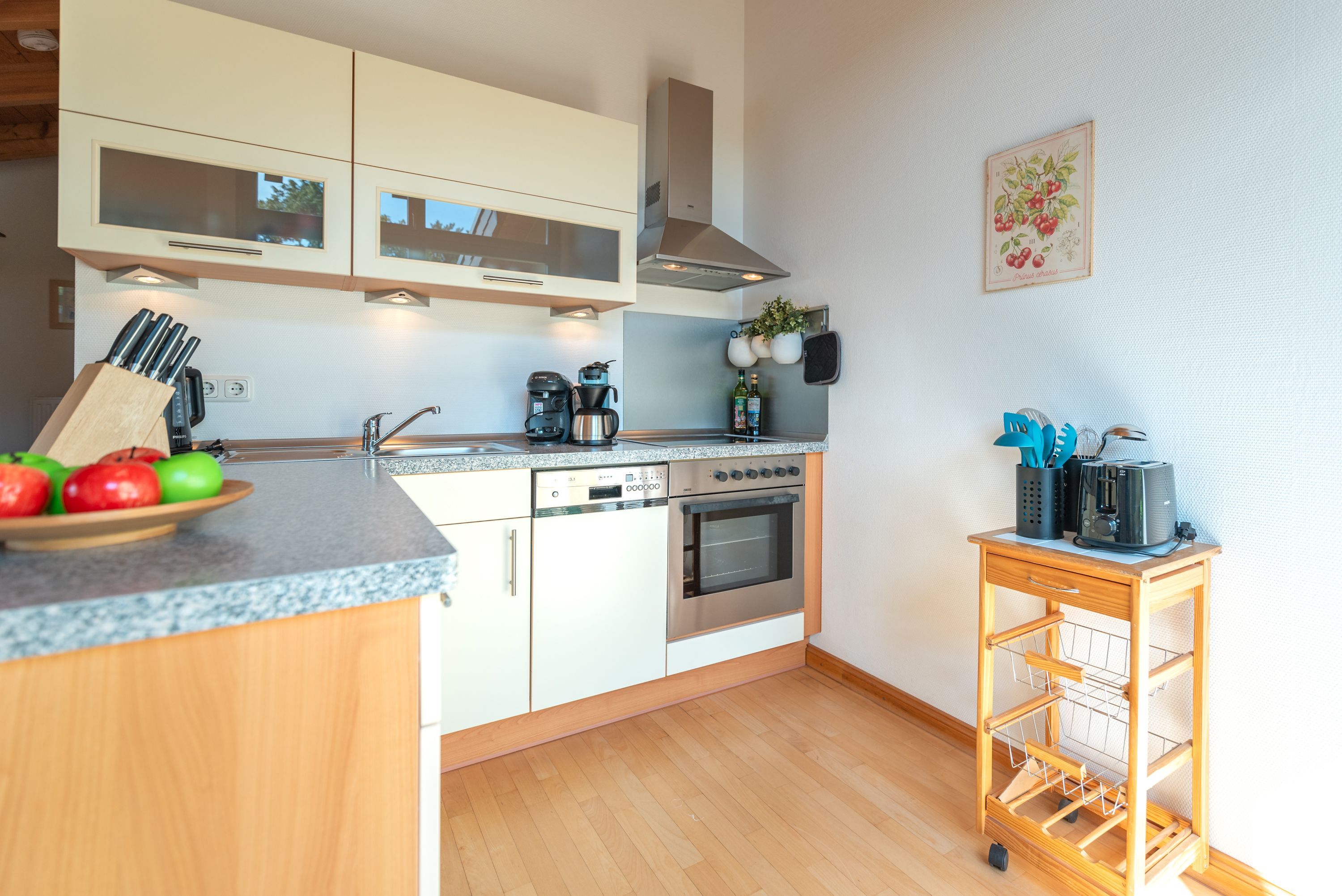 Die moderne Küchenzeile verfügt über Kühlschrank, Geschirrspüler, Backofen und Kaffeemaschine, während das Badezimmer mit Dusche, WC, Waschbecken und Haartrockner ausgestattet ist. Kostenloses WLAN sowie ein privater Pkw-Stellplatz direkt am Haus stehen Ihnen selbstverständlich zur Verfügung. Im Keller befinden sich Waschmaschine und Trockner, die gemeinschaftlich gegen Gebühr genutzt werden können. Auf dem Hof befindet sich ein Schuppen, um Fahrräder sicher abzustellen.