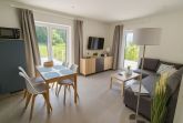 Die kleine, aber gut geschnittene Ferienwohnung Fiete in Wischuer bietet auf 35 m² Platz für bis zu 4 Personen. Sie verfügt über ein separates Schlafzimmer mit Doppelbett sowie eine Schlafcouch im Wohnbereich. Die moderne, offene Küchenzeile ist funktional ausgestattet und geht in den gemütlichen Essbereich über.