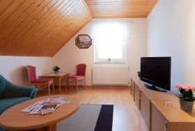 Die ca. 51 m² große Ferienwohnung liegt im Obergeschoss eines Einfamilienhauses und bietet Platz für max. zwei Personen.