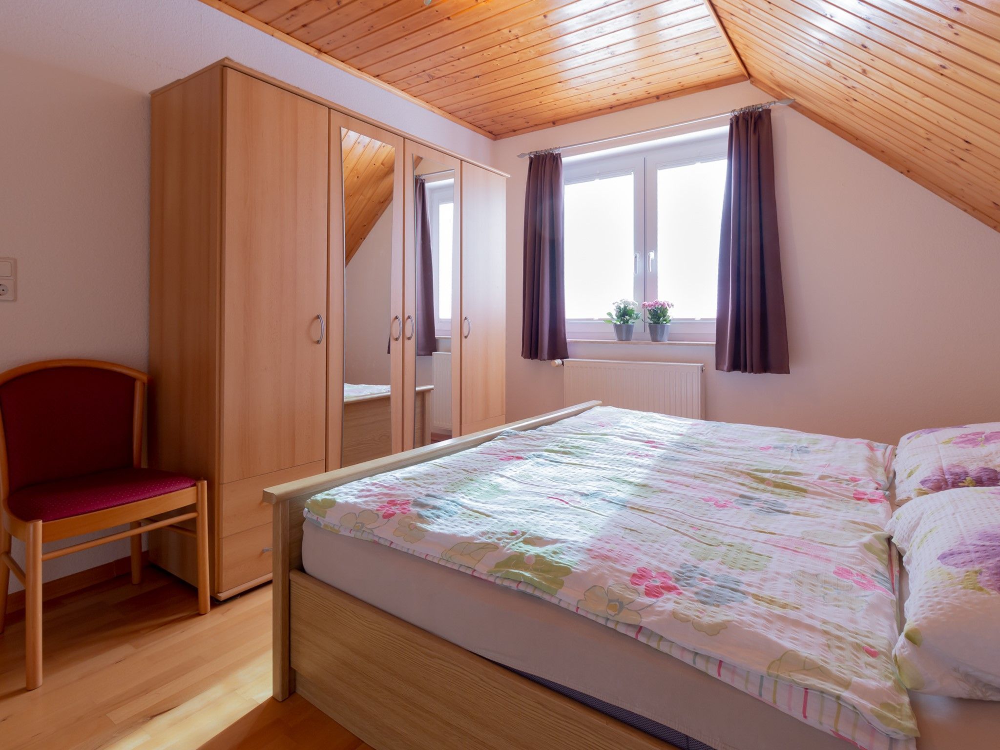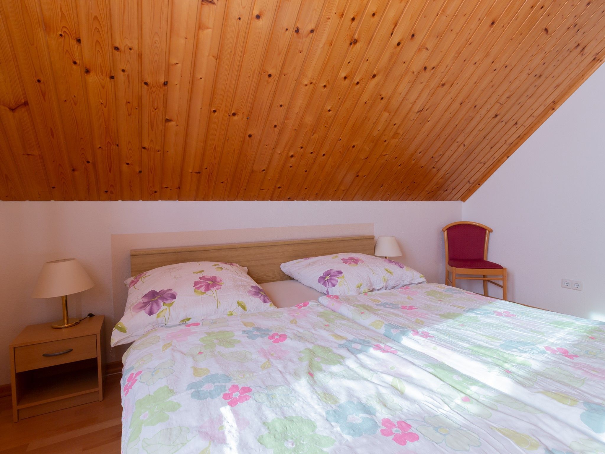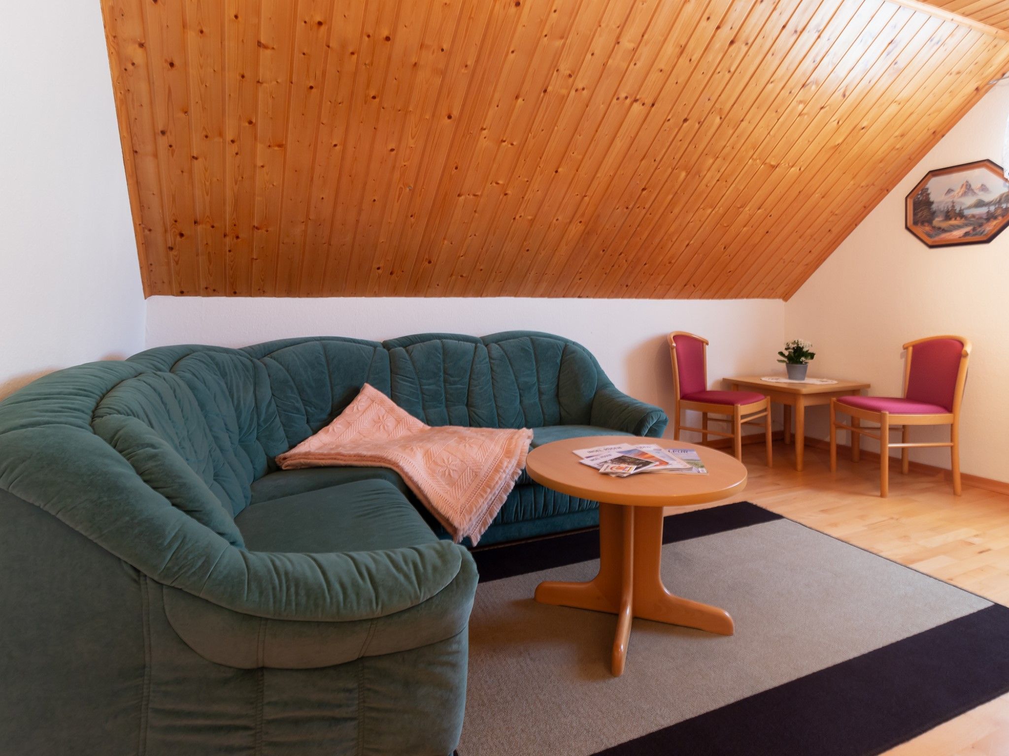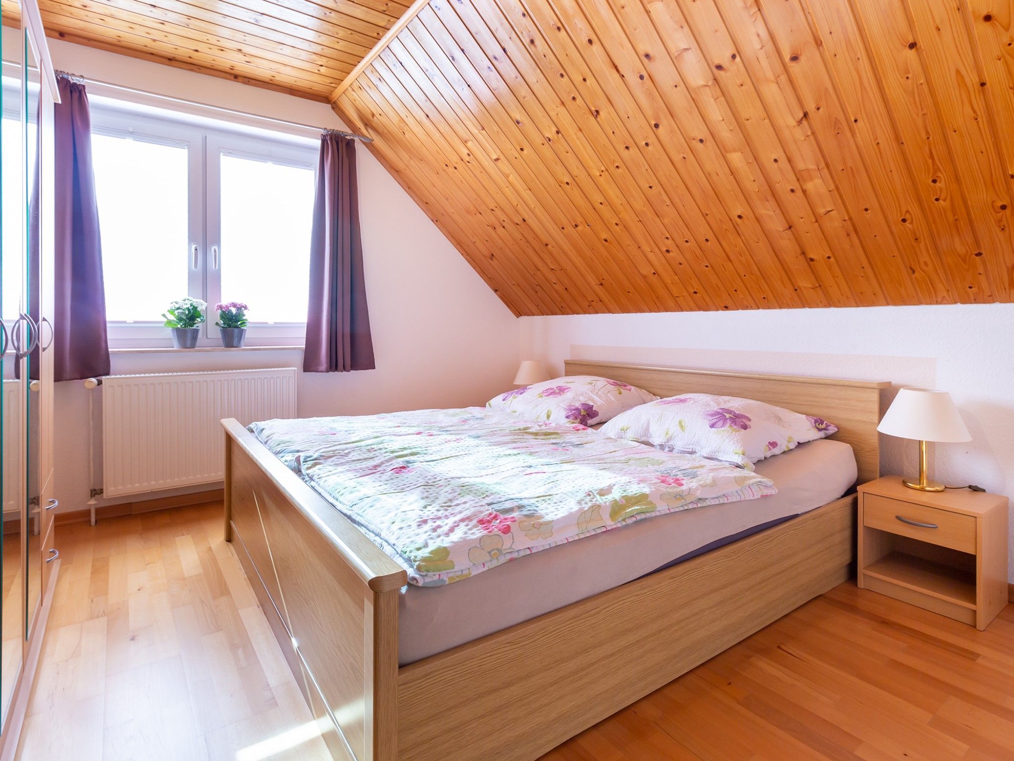 Die Ferienwohnung befindet im Obergeschoss eines Einfamilienhauses und bietet Platz für max. zwei Personen. Die Wohnung ist komplett mit Parkett ausgelegt.