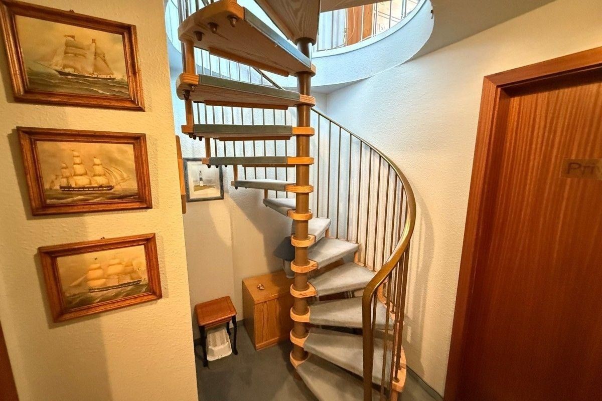 Die Wendeltreppe zum Souterrain ist für kleine Gepäckstücke besser geeignet als für große Koffer