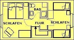 - 2 Schlafzimmer im OG mit 3 Betten (max. 4 Personen)