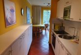 Ihre Wohnung ist aufgeteilt in einen Wohnraum mit Zugang zur Terrasse, eine offene Küche, ein separates Schlafzimmer und ein Bad mit Waschtisch und Glasdusche und WC. Das Wohnzimmer ist mit einem Essplatz und einer Sitzgruppe möbliert. Die technische Ausstattung beinhaltet ein Flachbild-TV, WLAN und Radio. Die Küche ist mit Kühlschrank, Cerankochfeld, Geschirrspüler, Gefrierschrank, Backofen, Mikrowelle, Kaffeemaschine, Wasserkocher und Toaster komplett ausgestattet. Das Schlafzimmer verfügt über Doppelbett und Verdunklungsmöglichkeiten.
