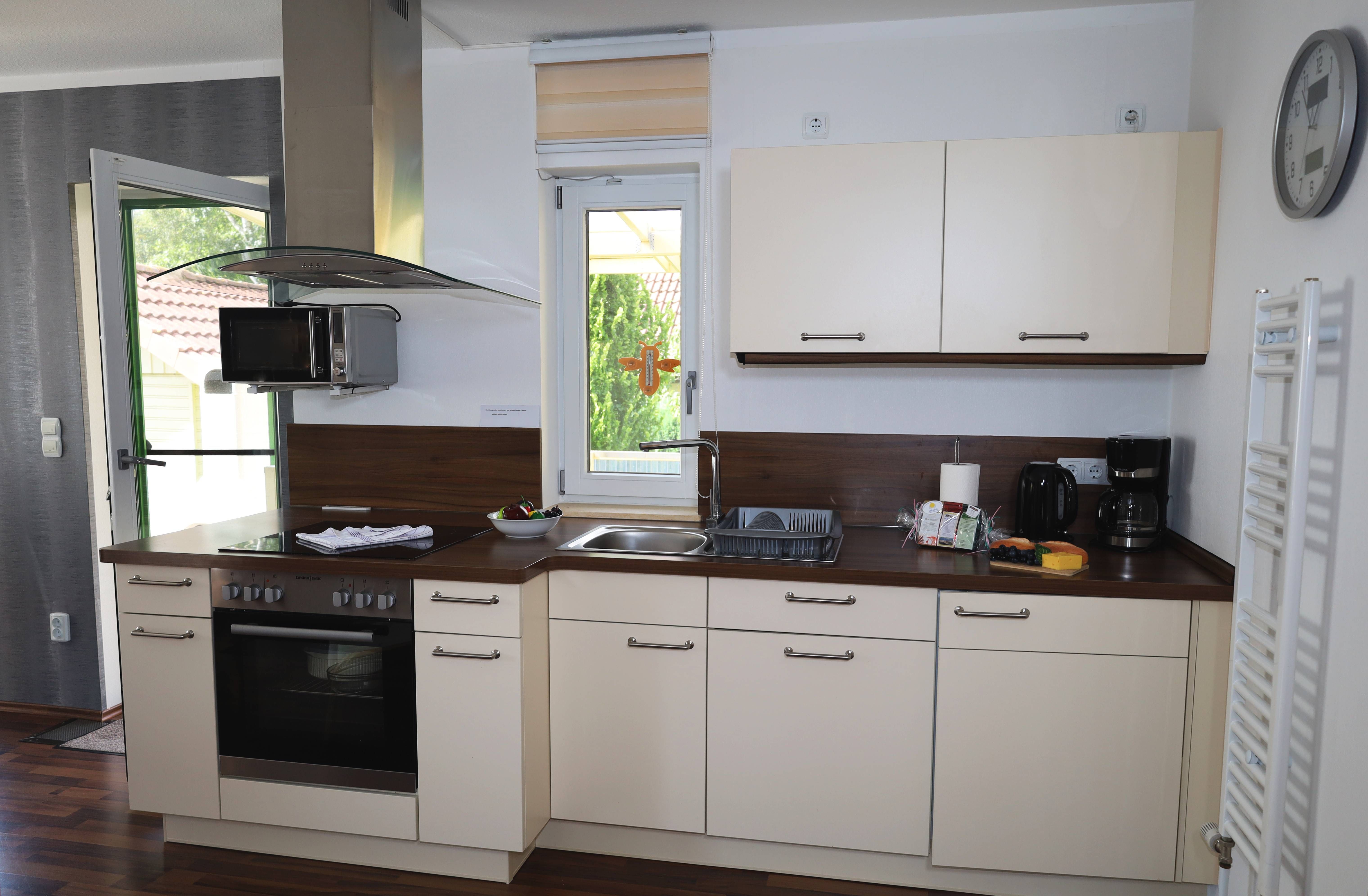 Die moderne Küchenzeile bietet alles, was Sie für kulinarische Genüsse benötigen vom Ceranherd über Backofen und Mikrowelle bis hin zu Kaffeemaschine, Wasserkocher und Toaster.